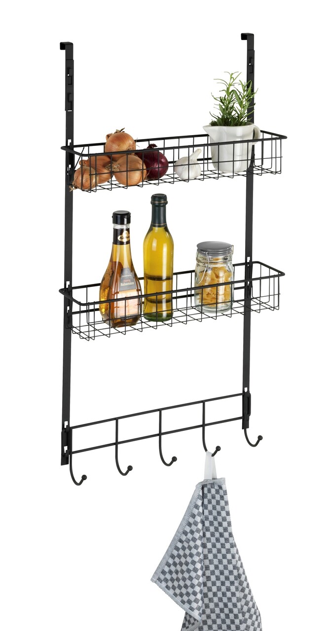 Suport accesorii cu agatare pe usa, Wenko, Over door, 39 x 10 x 75 cm, metal, negru