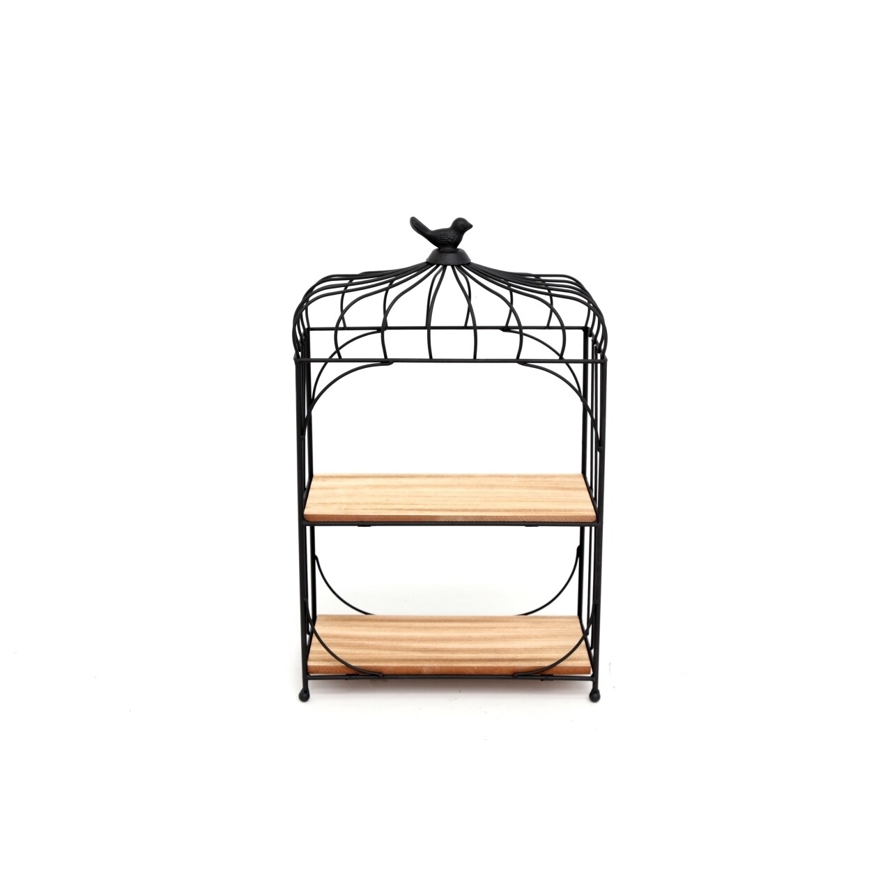 Suport cu 2 sertare Bird Cage, Bedora, 30x48x15 cm, lemn/metal, natur/negru