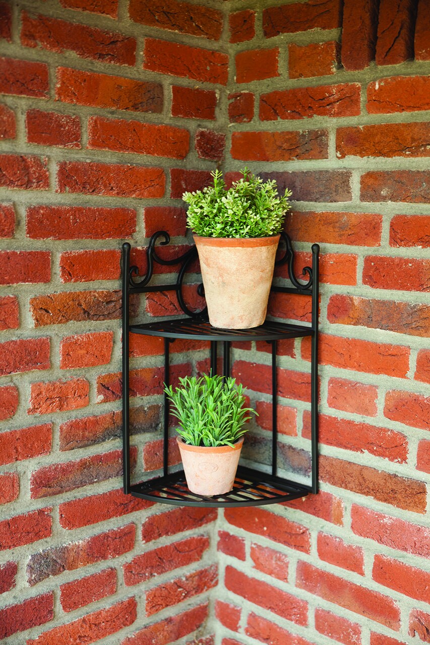 Suport de colt pentru ghiveci, Esschert, pliabil, 22.1 x 22 x 47.2 cm, fier, negru