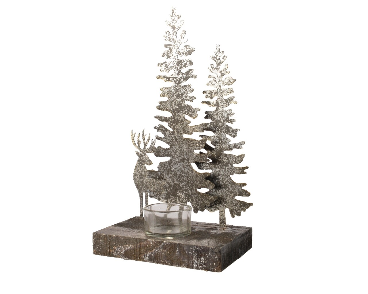 Suport de lumanare, Decoris, Cerb, fier/sticla, argintiu