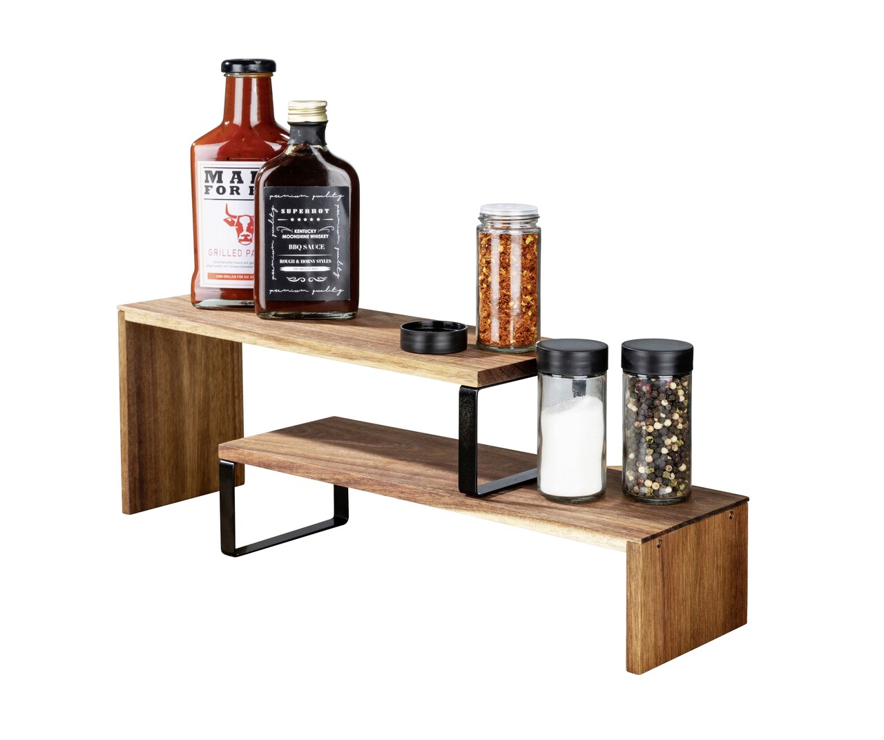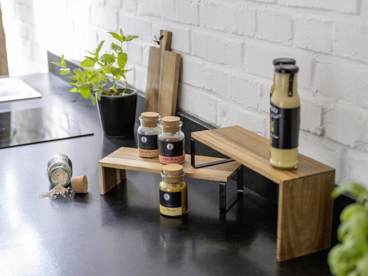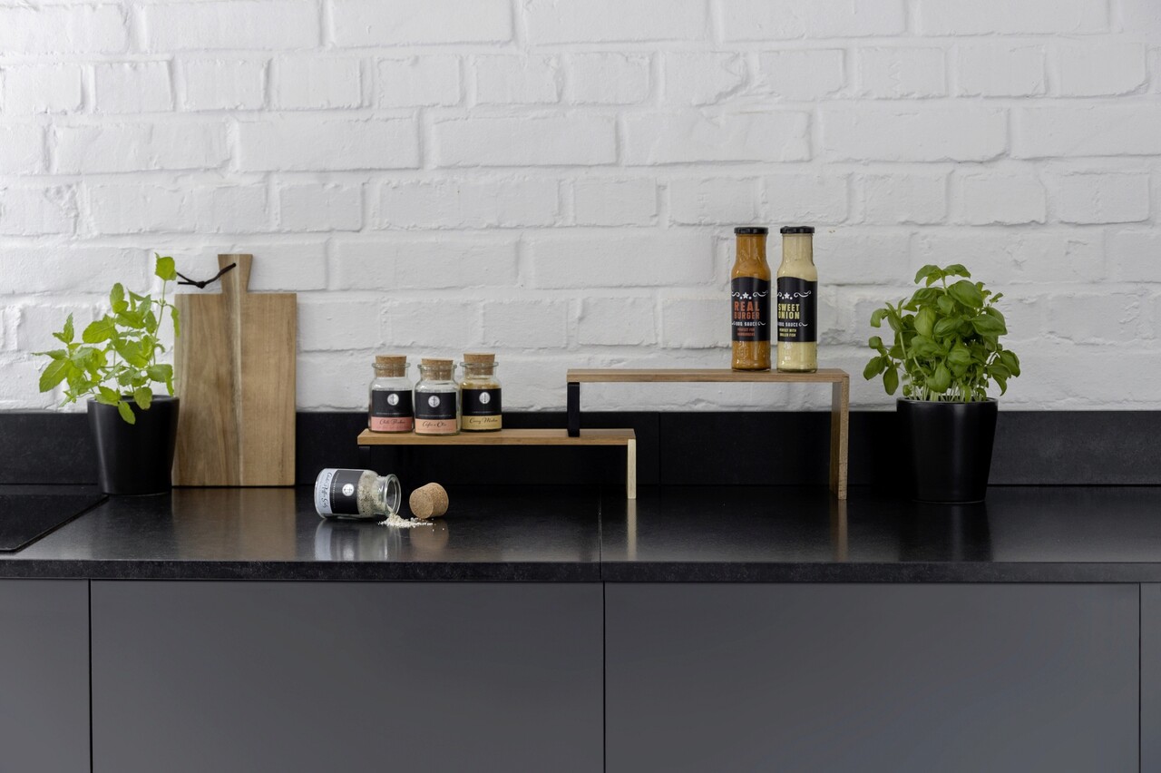 Suport depozitare pentru bucatarie, Wenko, Vali, 37 x 12 x 16 cm, lemn/metal, natur/negru