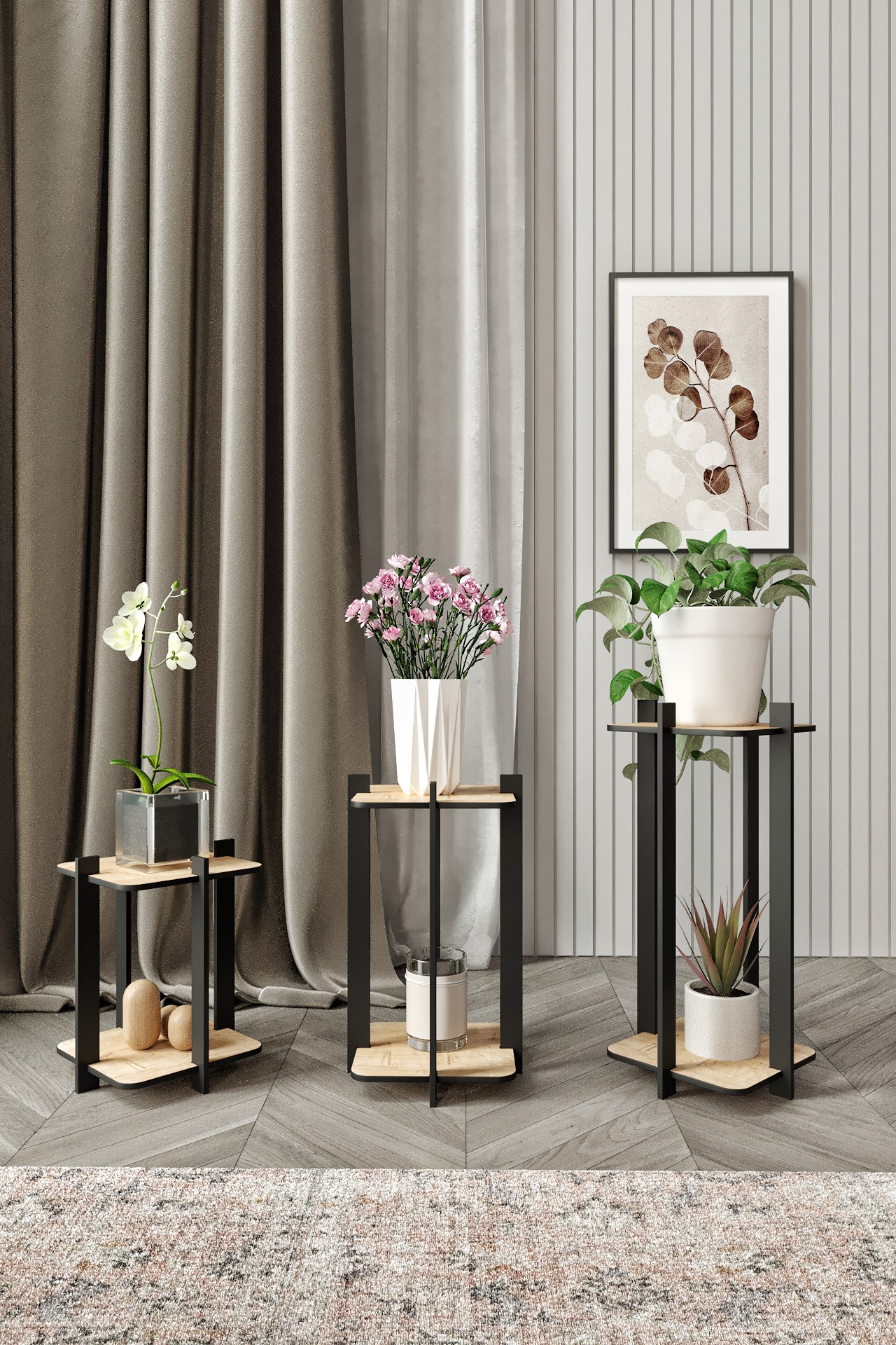 Suport din lemn pentru plante, Hanah Home, Flower Desk Square, MDF , Stejar