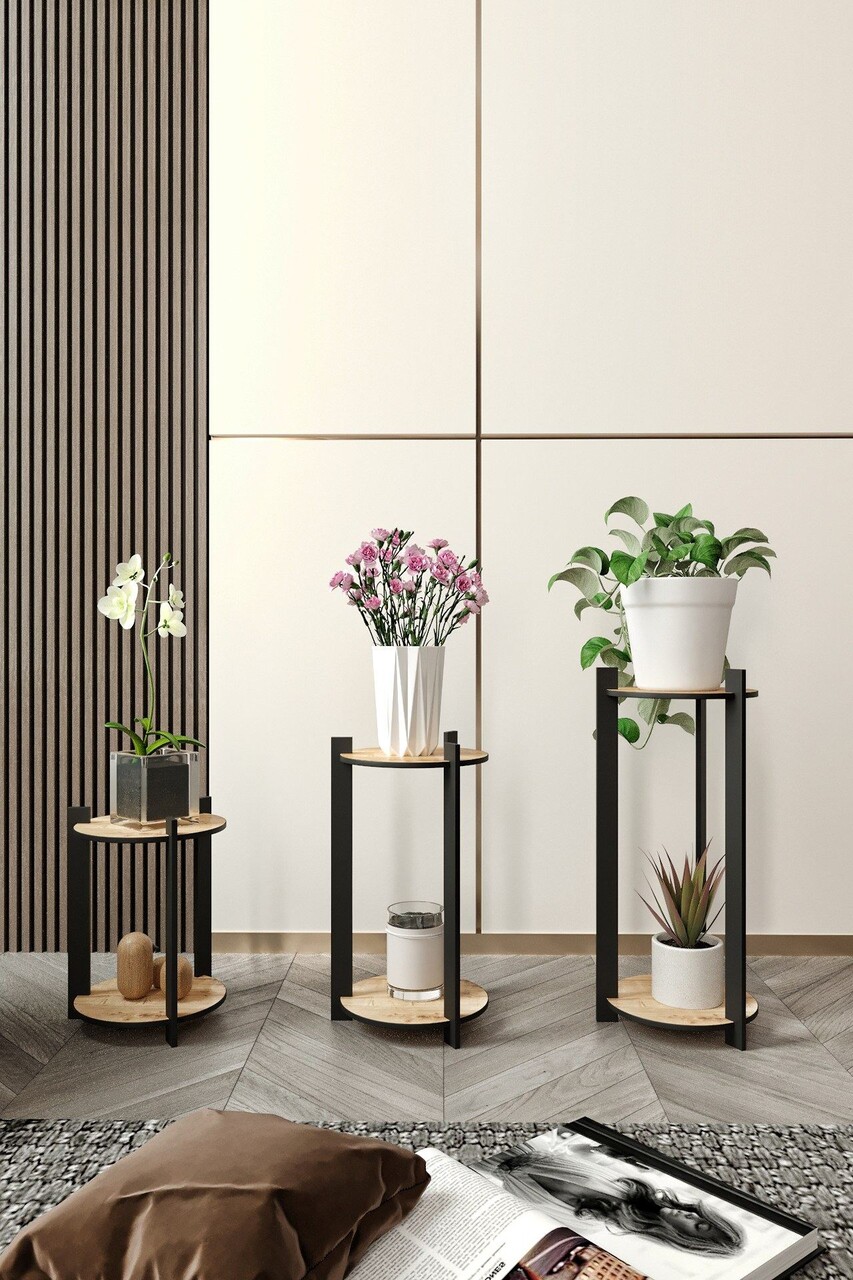 Suport din lemn pentru plante, Poter, Flower Desk Round, MDF , Stejar
