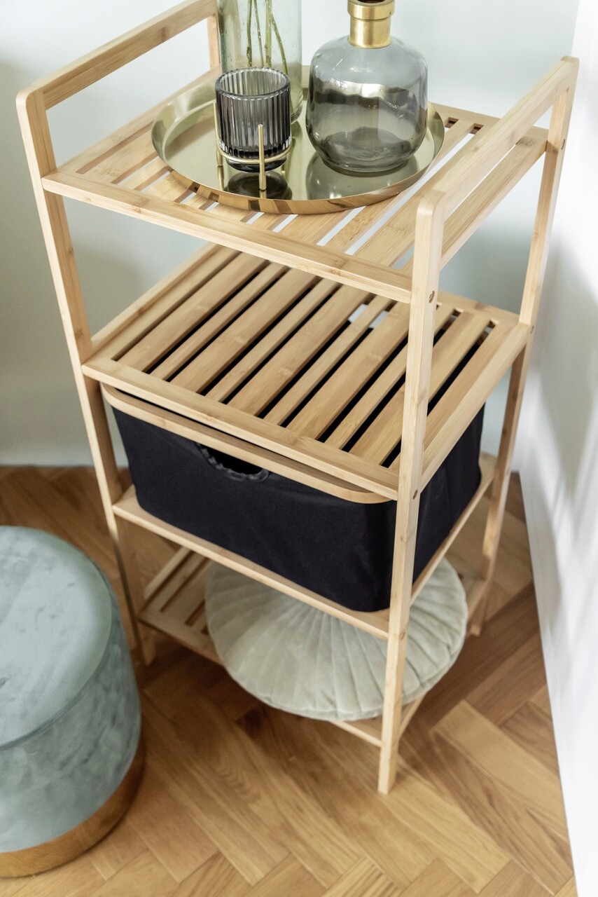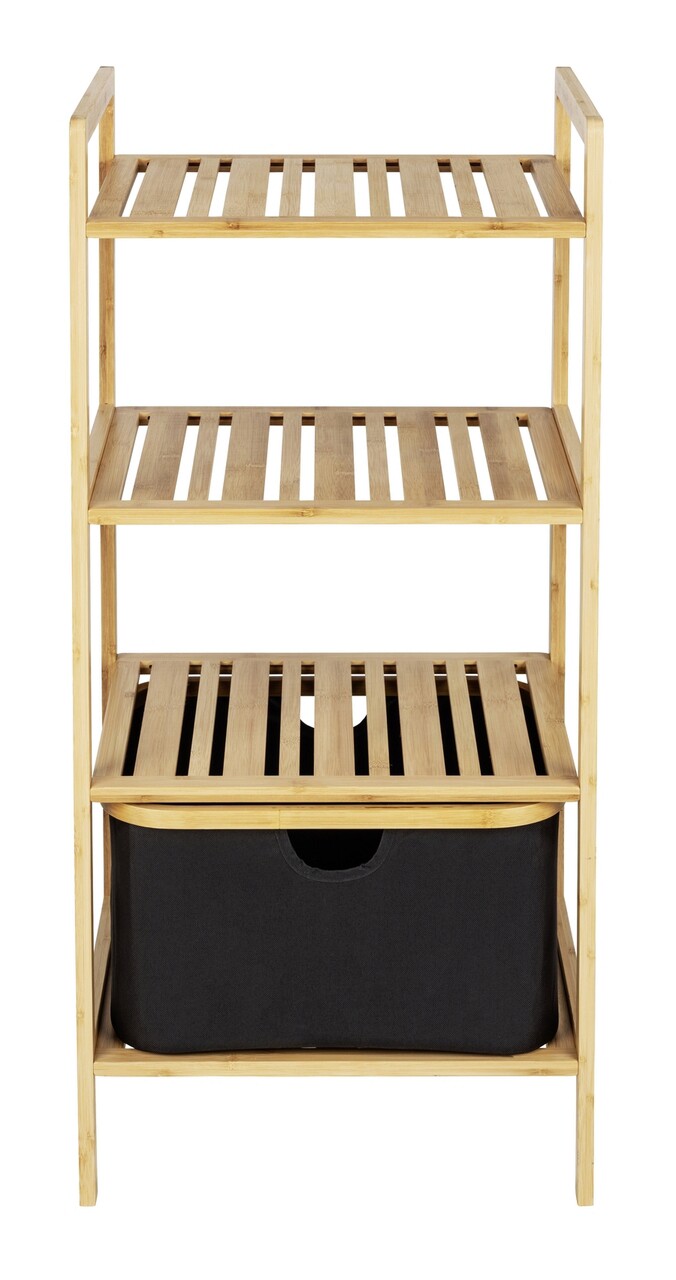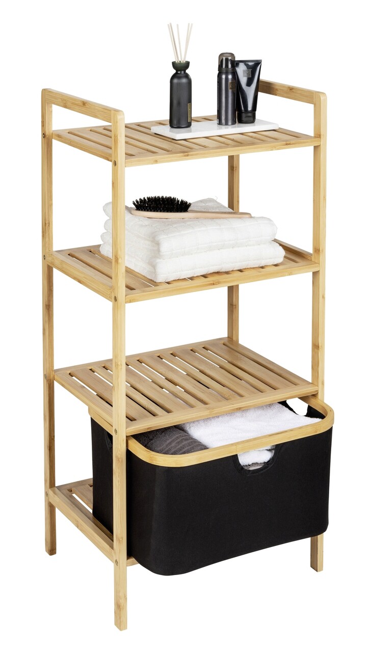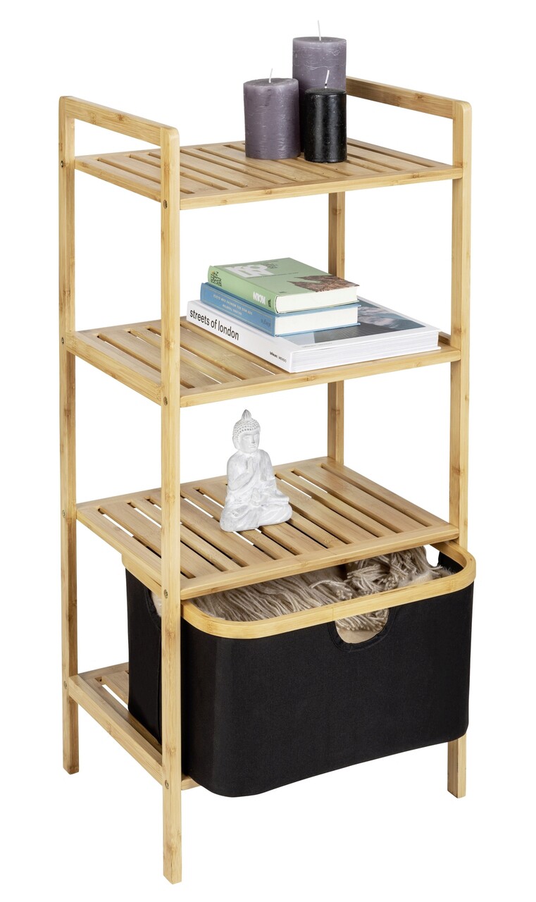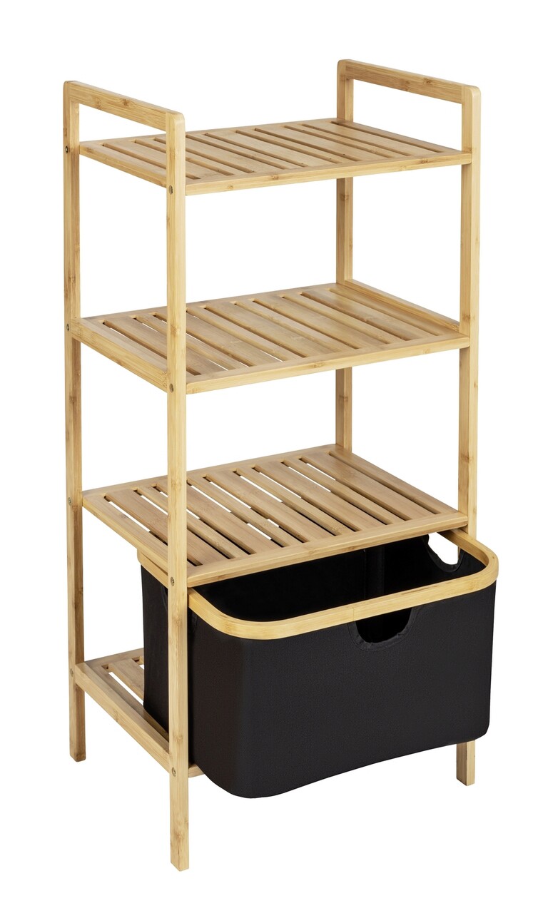 Suport etajat, Wenko, Ecori, 44 x 33 x 93.5 cm, bambus/poliester/polietilena, natur/negru