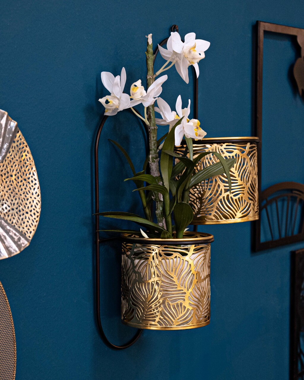 Suport ghivece cu fixare pe perete Double Hong, Mauro Ferretti, 27x14x48 cm, fier, negru/auriu