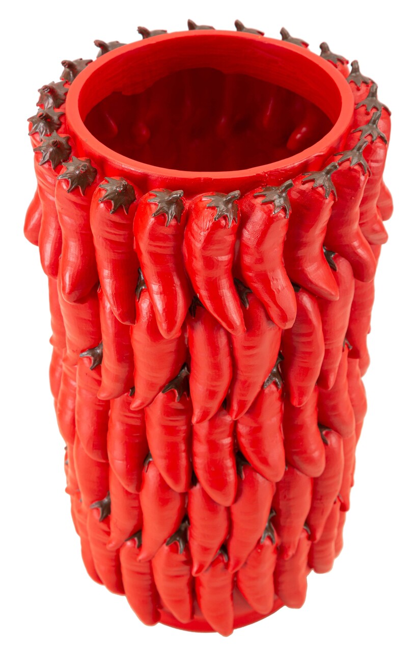 Suport decorativ pentru ghiveci sau vaza, realizat din polirasina si impodobit cu ardei iuti colorati, ce adauga un aer jucaus si plin de personalitate. Ideal pentru a aduce un strop de culoare in bucatarii moderne sau rustice. Deschidere superioara: Ø 13 cm.