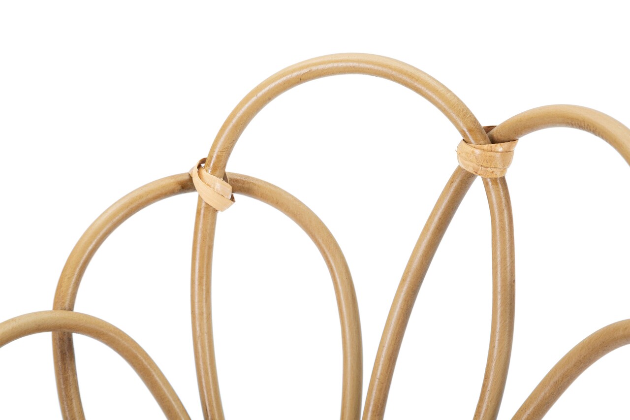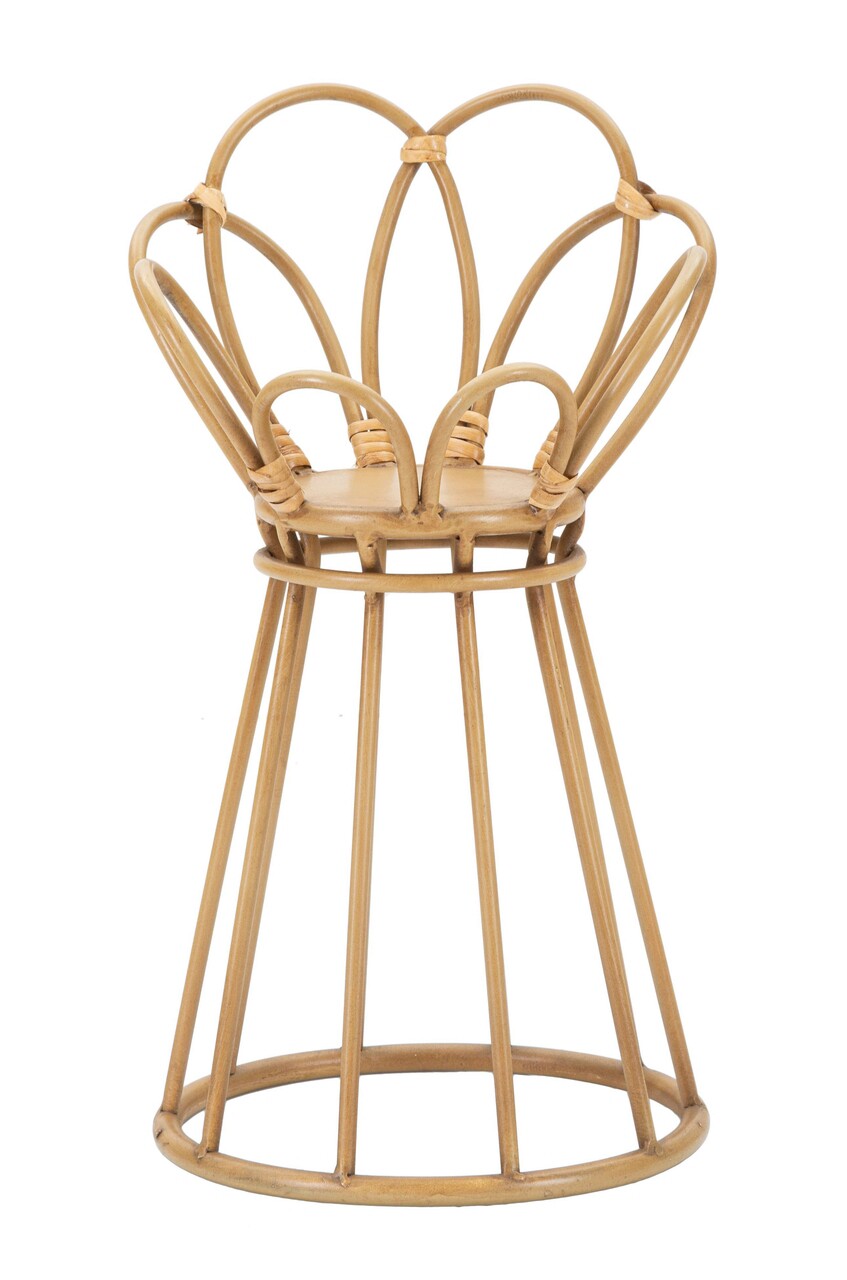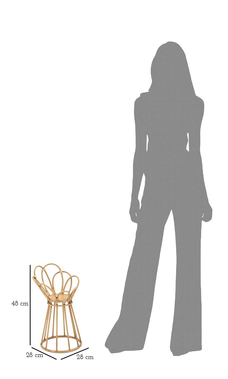 Suport de ghiveci rotund si elegant din metal cu finisaj din ratan, cu un design care seamana cu o floare.
