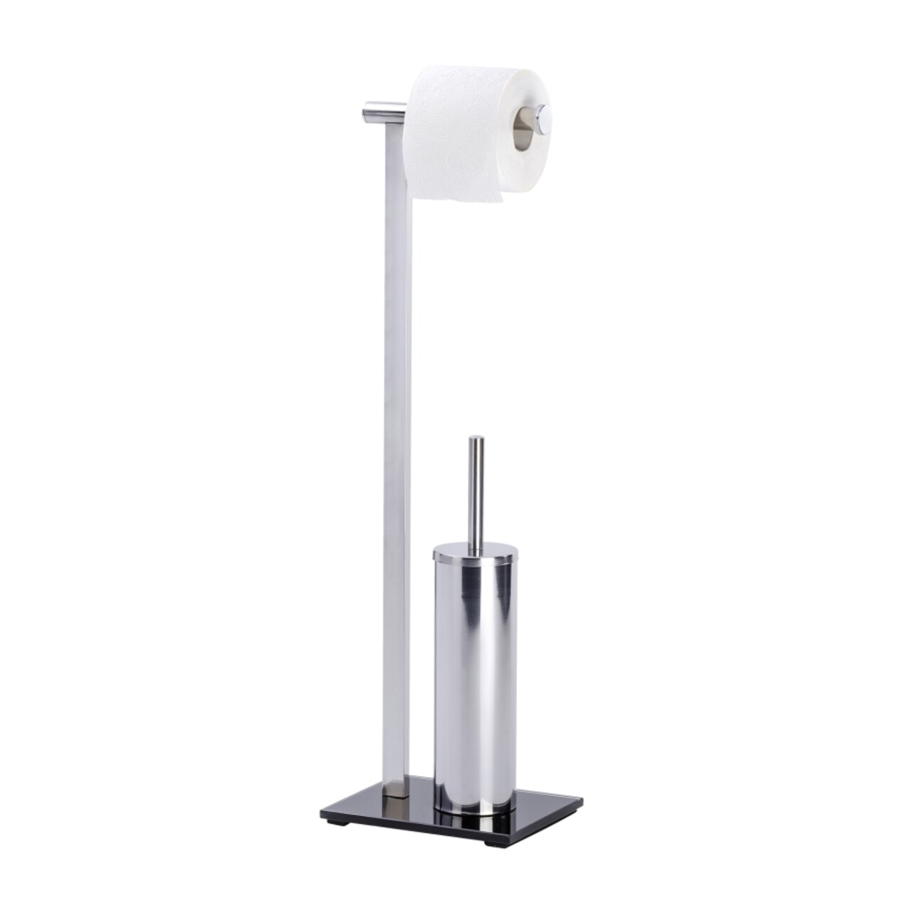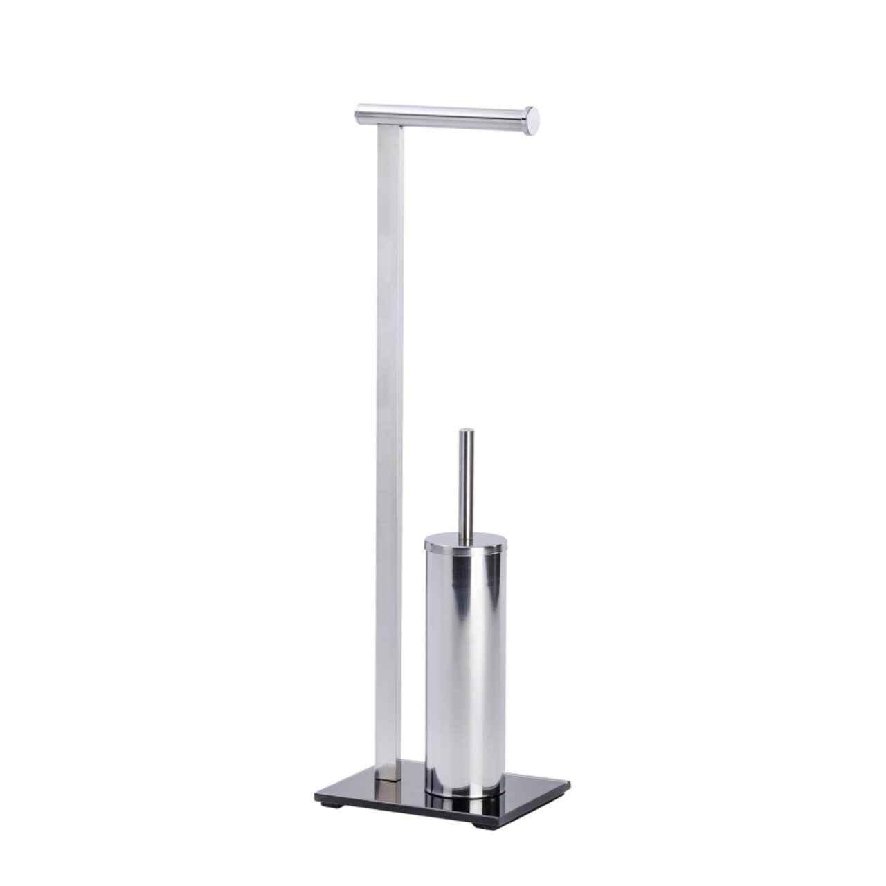 Suport hartie igienica si perie de toaleta Lava, Wenko, 21 x 17 x 71 cm, inox, argintiu