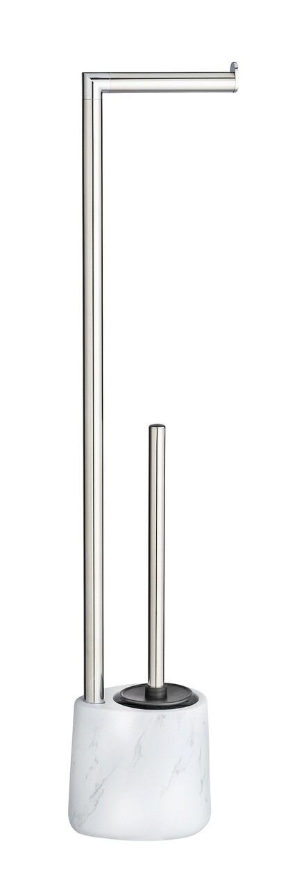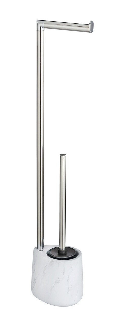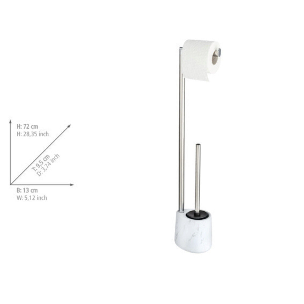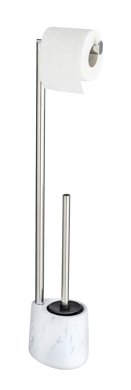 Suport hartie igienica si perie pentru toaleta Adrada, Wenko, 13x9.5x72 cm, ceramica/inox, alb/argintiu