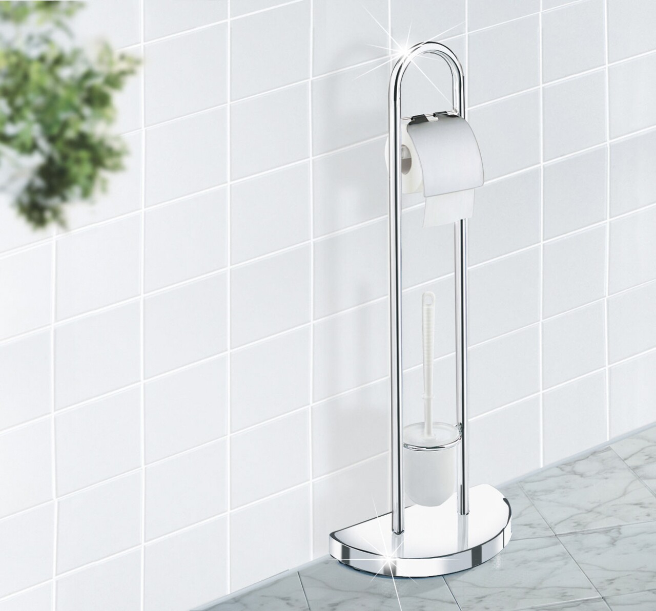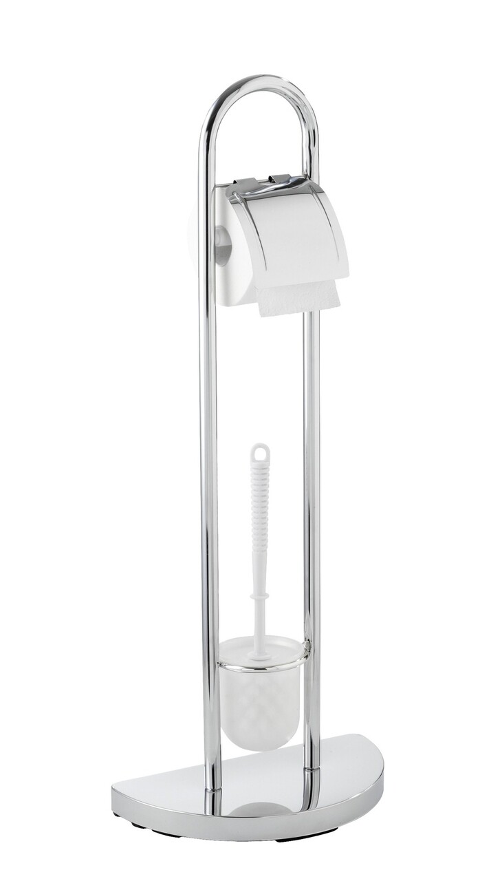 Suport hartie igienica si perie pentru toaleta, Wenko, Cosenza, 18 x 33 x 84 cm, metal/polipropilena, gri