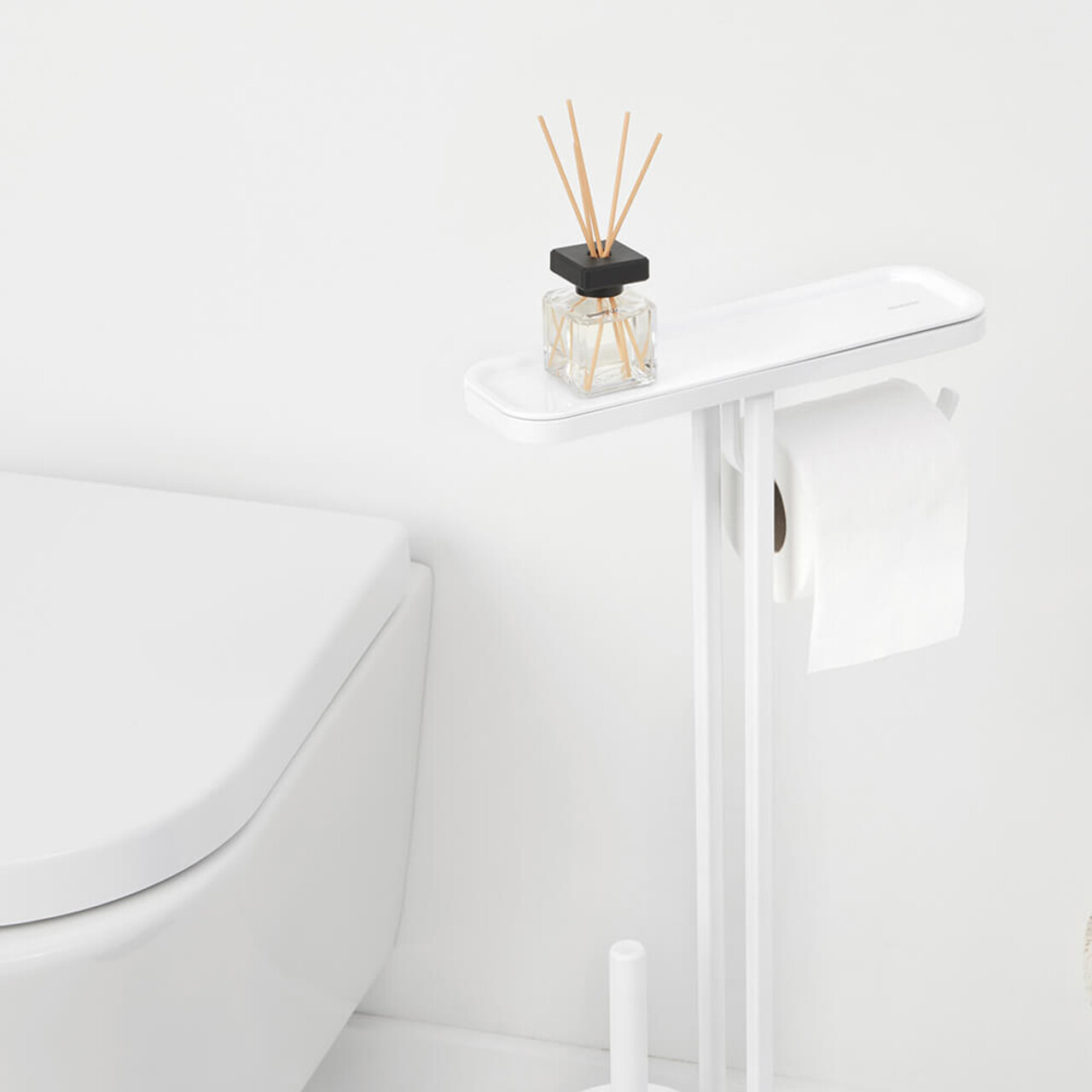 Suport hartie igienica si perie toaleta, Brabantia, MindSet, 29x12.5x75.5 cm, otel, Alb