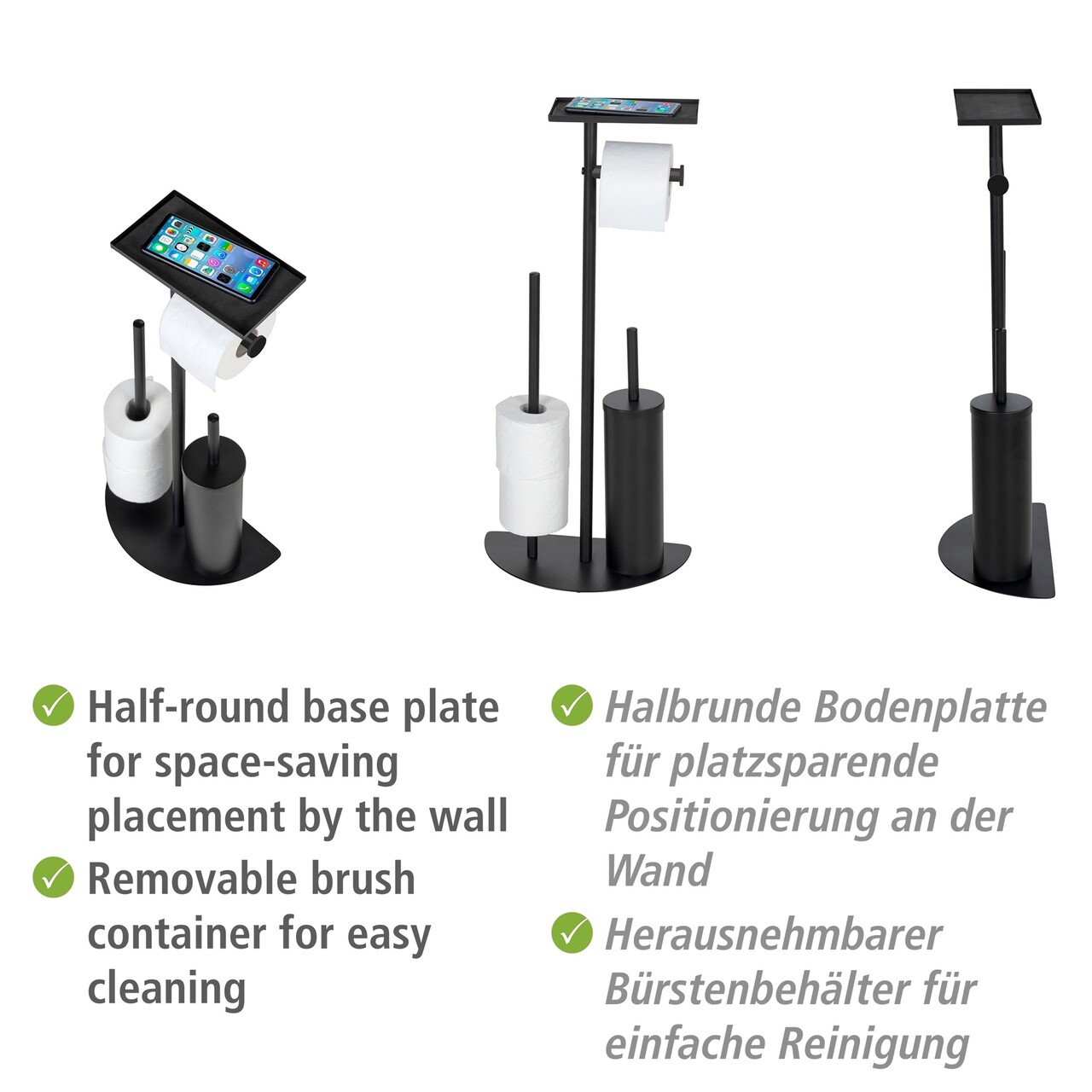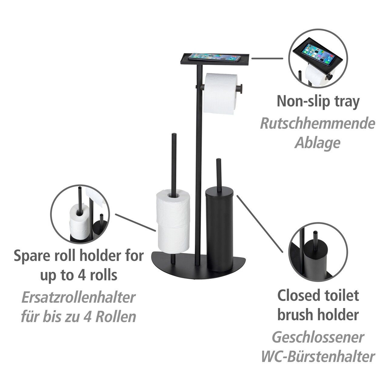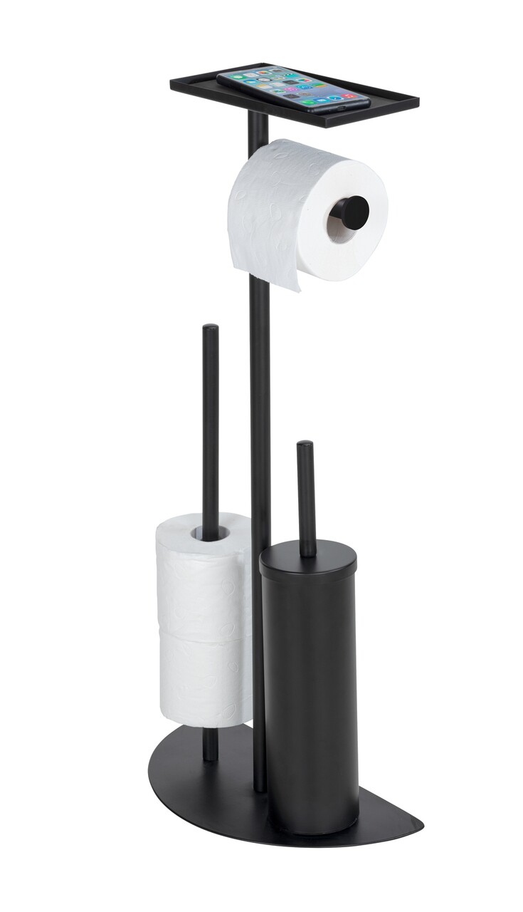 Suport hartie igienica si perie toaleta Cosenza, Wenko, 32.5x17.5x72 cm, metal/plastic EVA, negru