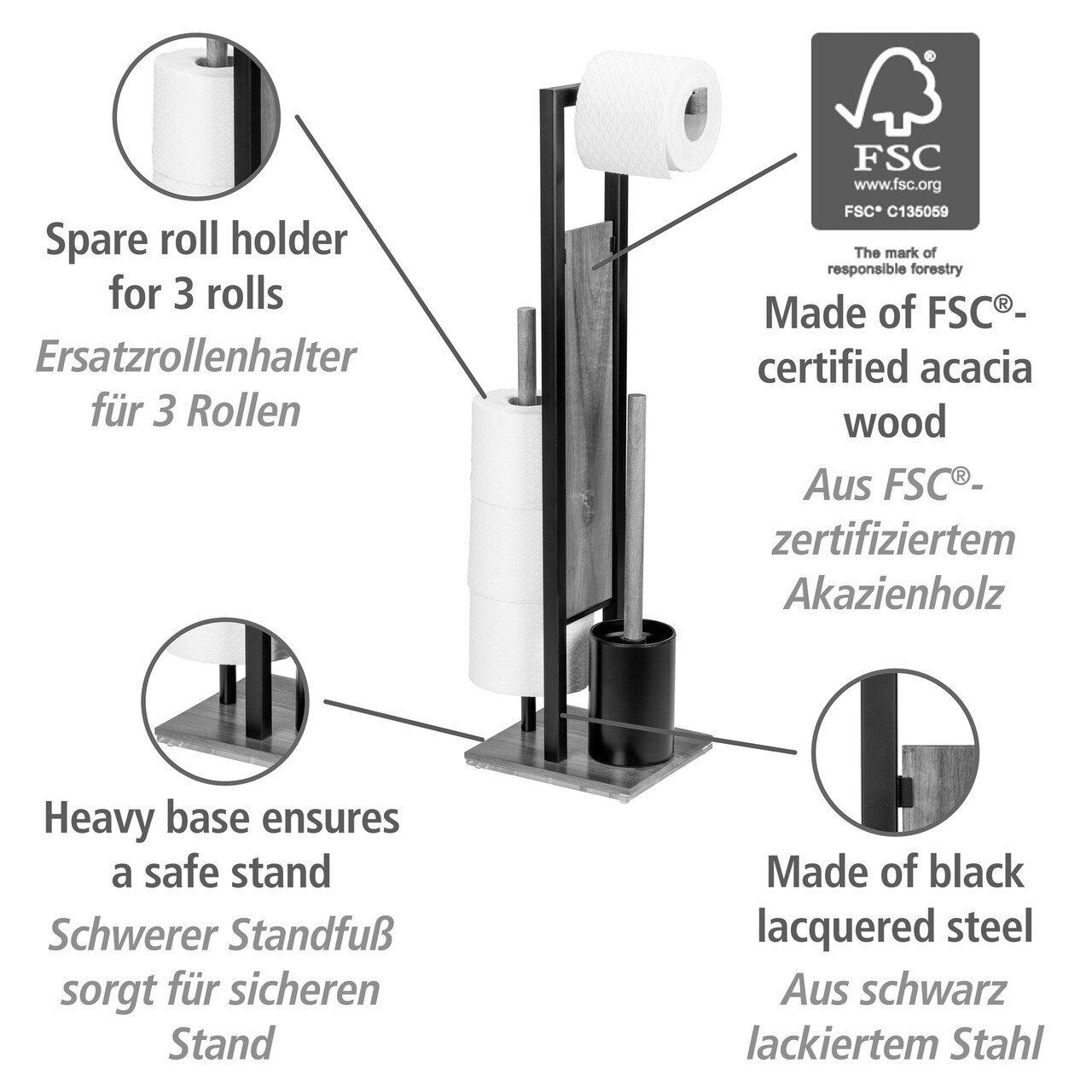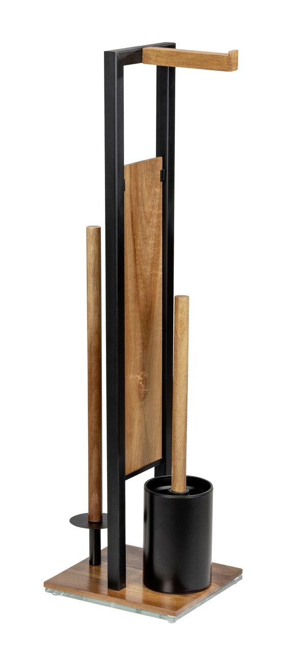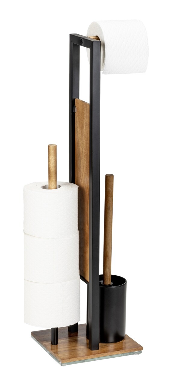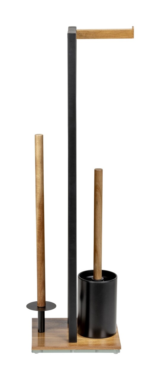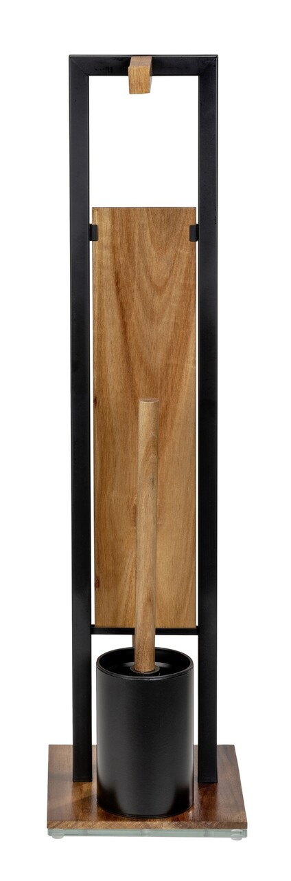 Suport hartie igienica si perie toaleta Rivalta, Wenko, 18x23x70 cm, metal/lemn, maro/negru
