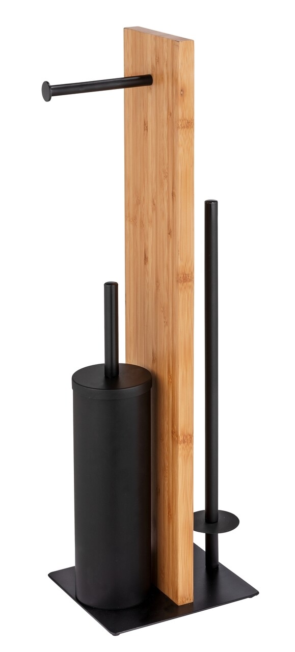 Suport hartie igienica si perie toaleta, Wenko, Lesina 3 in 1, 18 x 69 x 18 cm, bambus/inox, natur/negru
