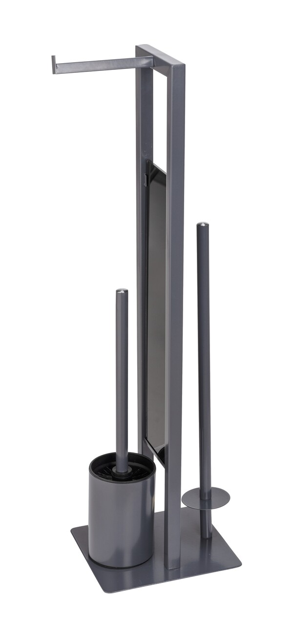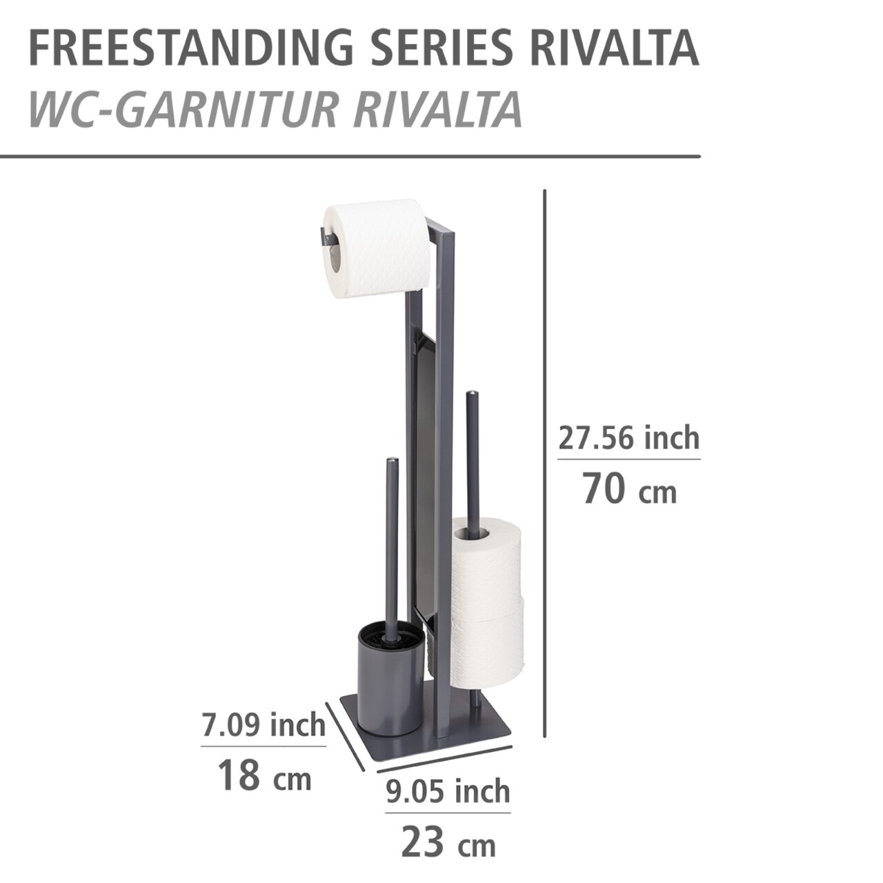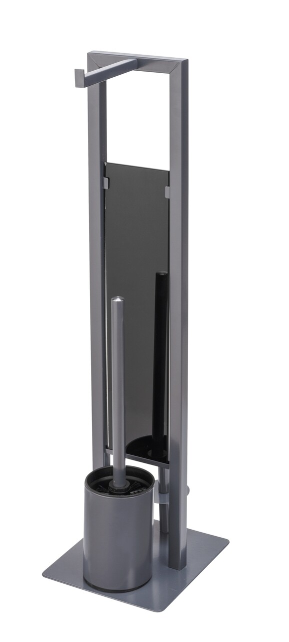 Suport hartie igienica si perie toaleta, Wenko, Rivalta, 18 x 70 x 23 cm, inox/sticla temperata/polipropilena, gri/negru