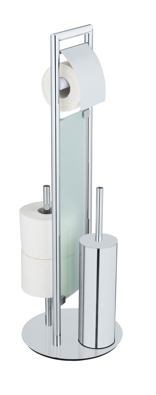 Suport hartie igienica si perie toaleta, Wenko, Sulmona, 25 x 76 x 25 cm, inox/polipropilena, gri