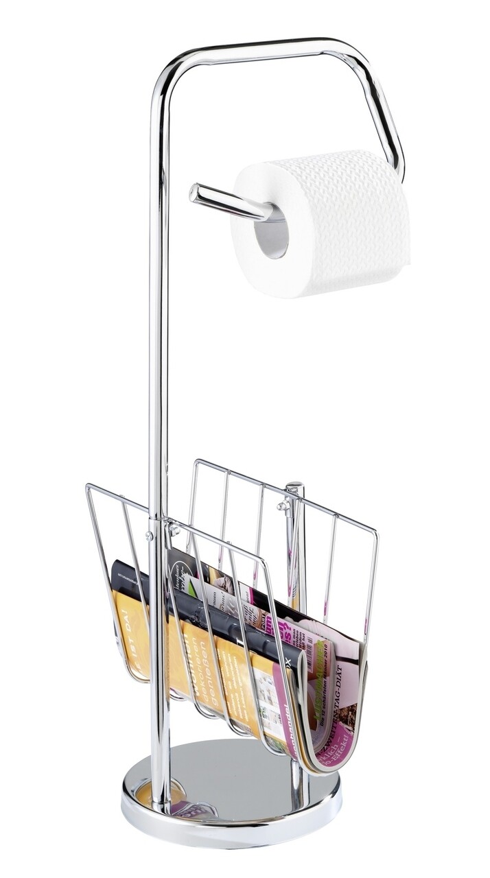 Suport hartie igienica si reviste, Wenko, 65.5 x 24 cm, metal cromat, argintiu