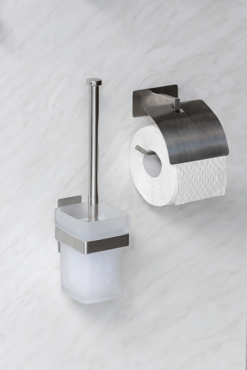 Suport hartie igienica, Wenko, Turbo-Loc, Genova Matt, 14 x 11.4 x 6.2 cm, inox, gri