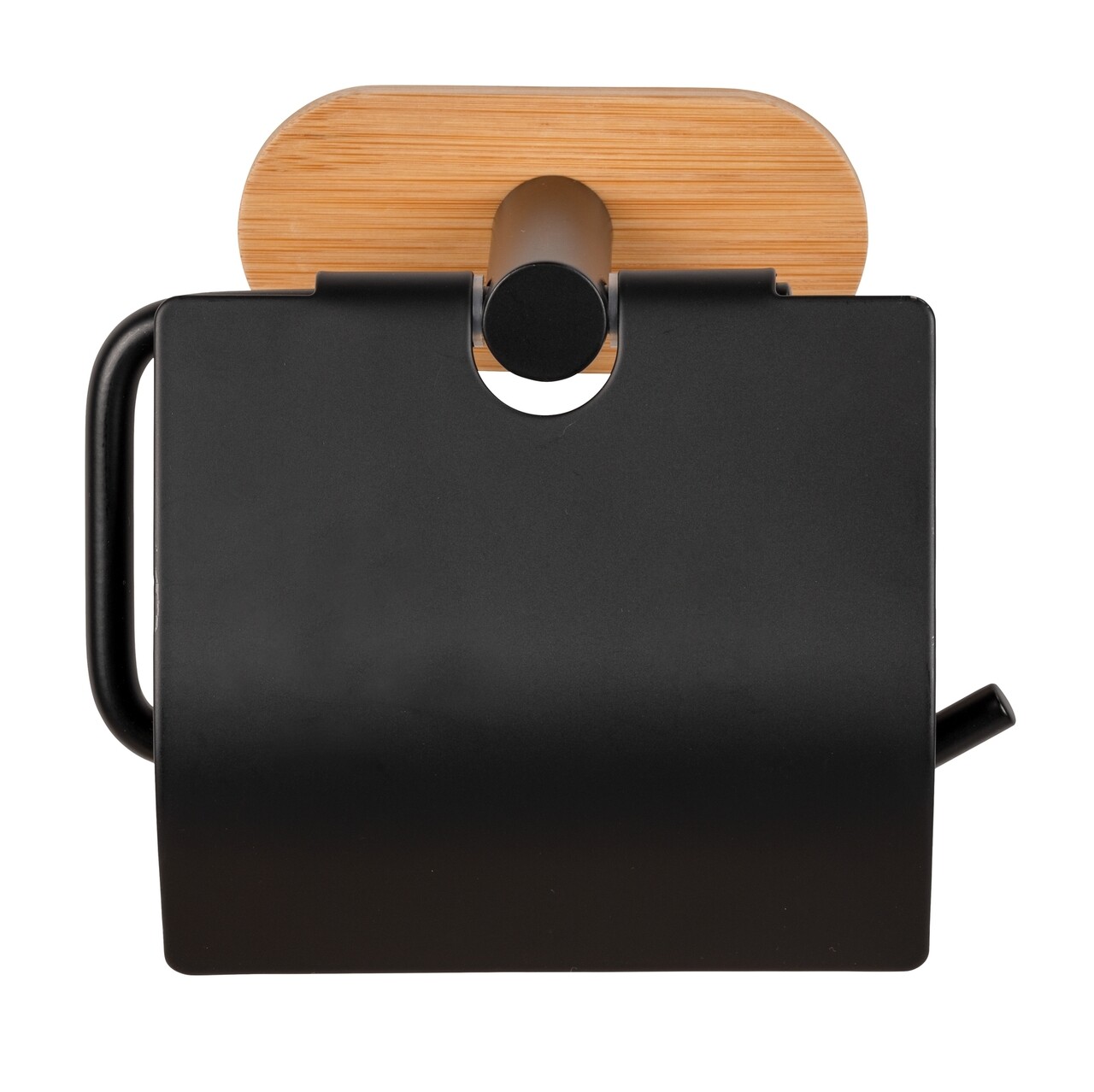 Suport hartie igienica, Wenko, Turbo-Loc, Orea, 12 x 7 x 7 cm, bambus/inox, natur/negru
