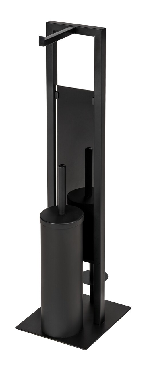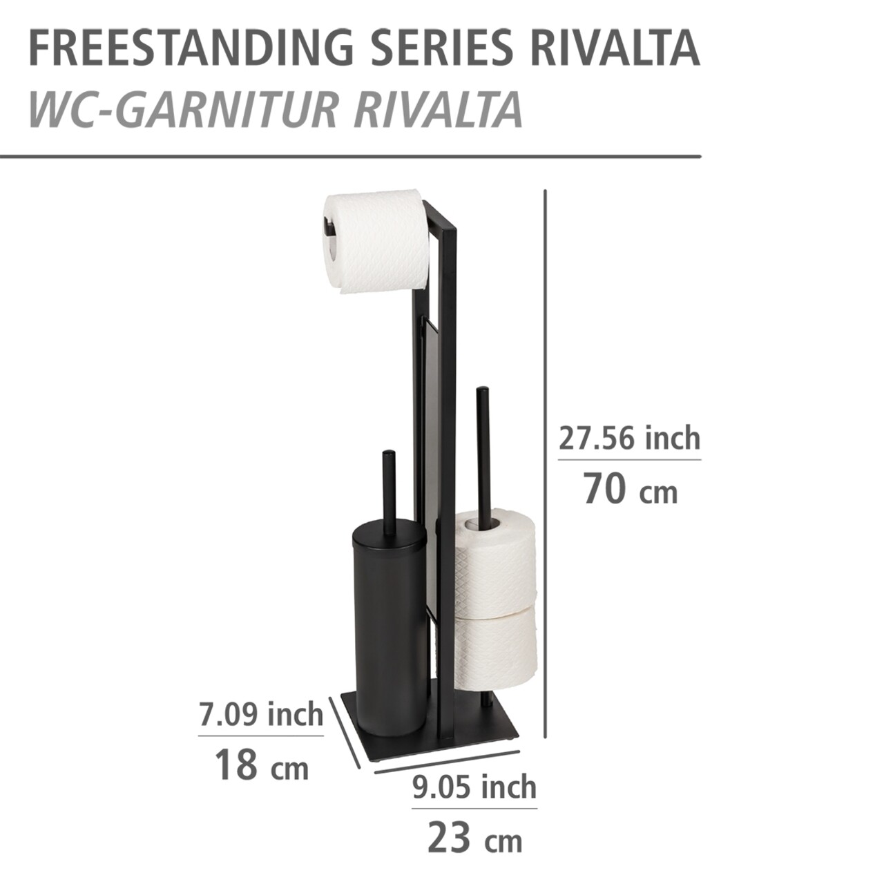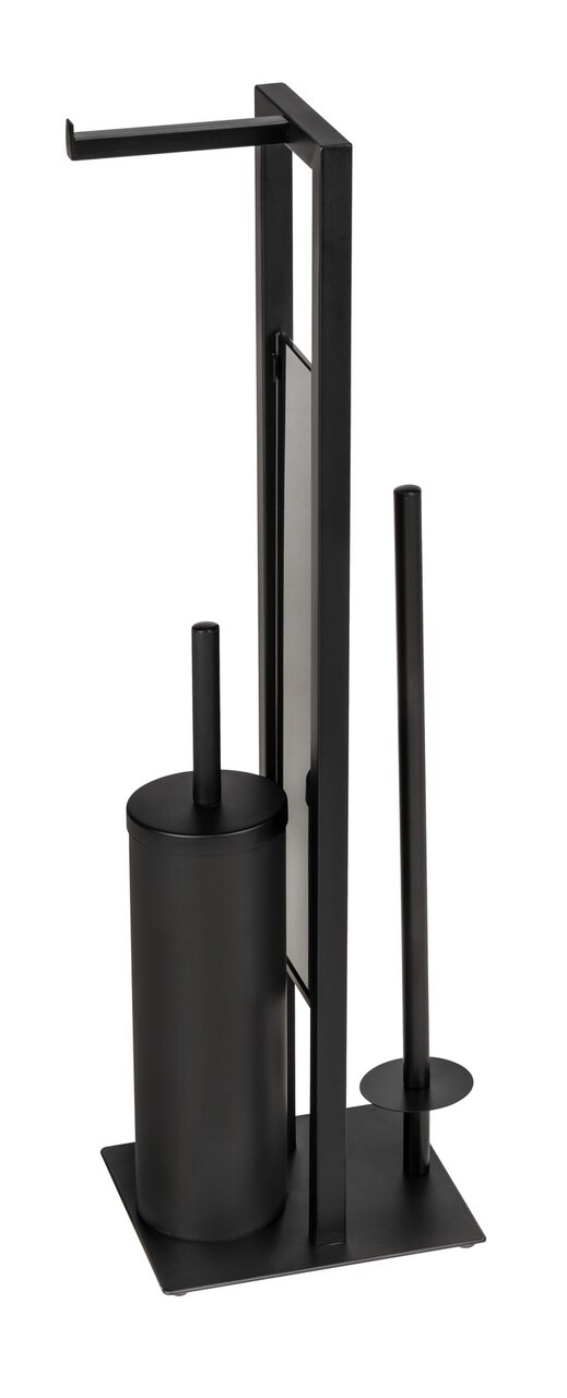 Suport hartie igiienica si perie toaleta, Wenko, Rivalta, 18 x 70 x 23 cm, inox/sticla temperata/polipropilena, negru