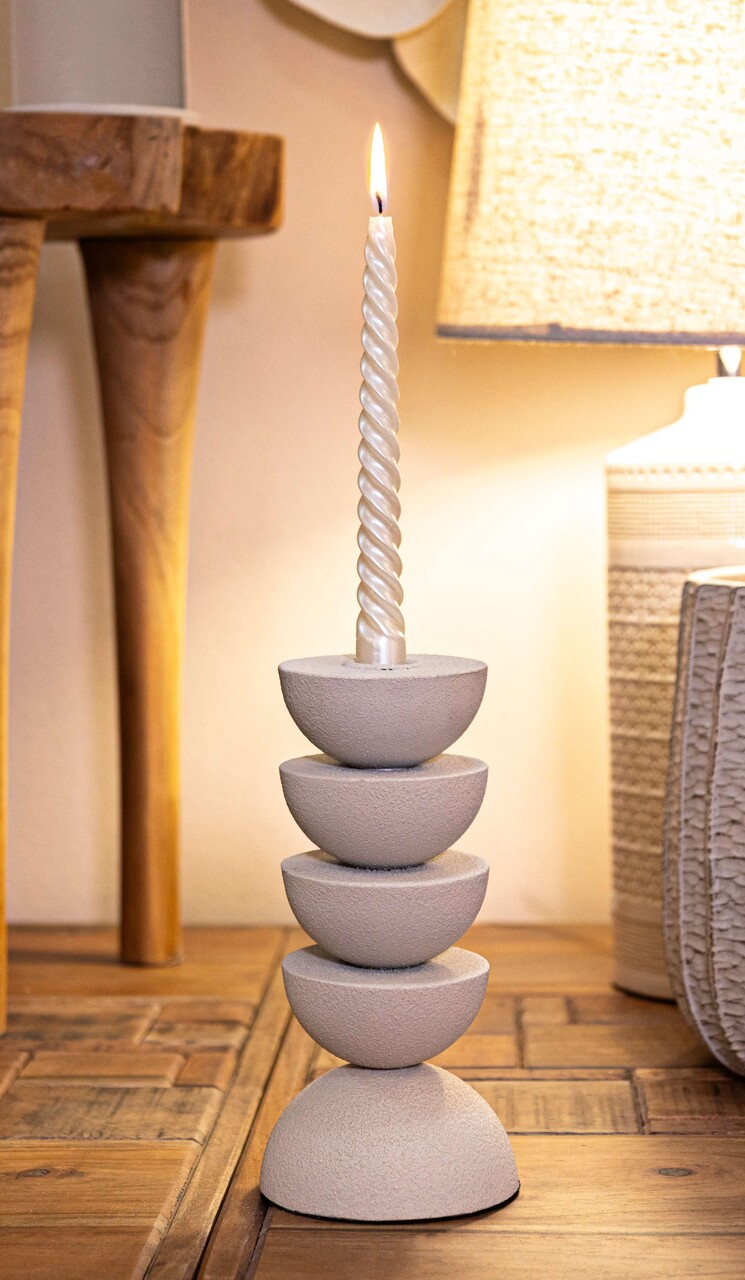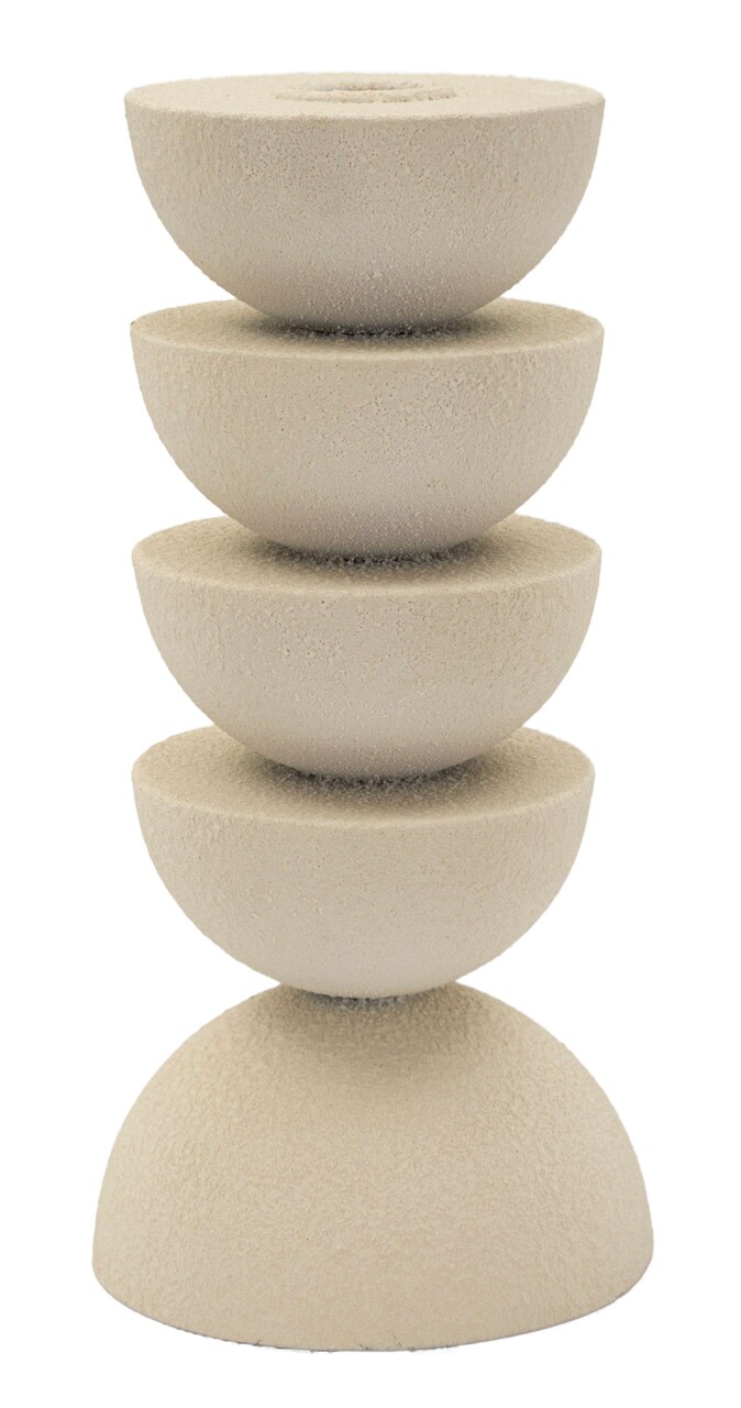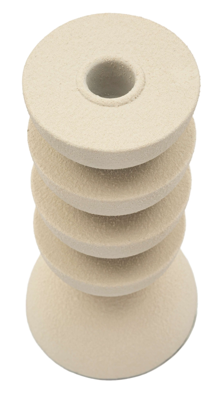 Formele moi, asemanatoare dunelor de nisip, definesc un obiect decorativ rafinat. Adauga un accent zen si o nota contemporana mesei, comodei sau raftului. Diametru orificiu lumanare: 2.5 cm.