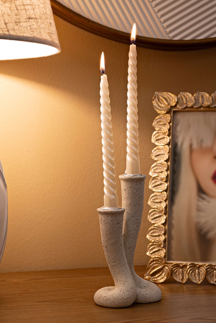 Suport lumanare Stons, Mauro Ferretti, 10x6.5x17.5 cm, polirasina, crem