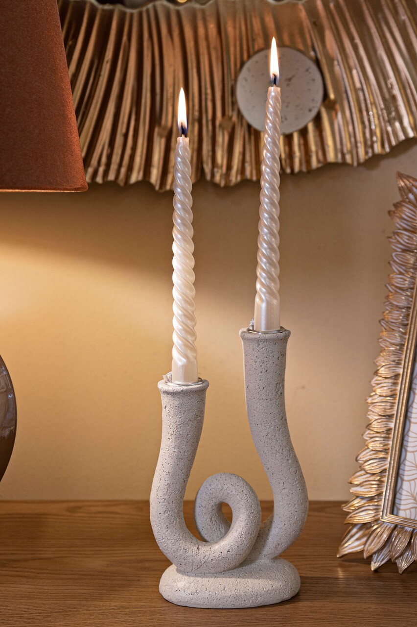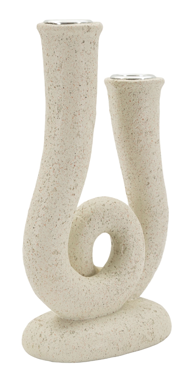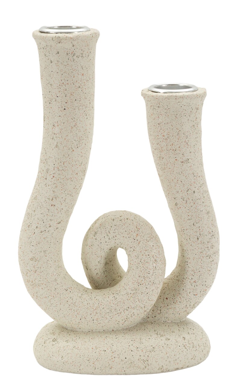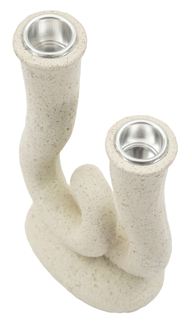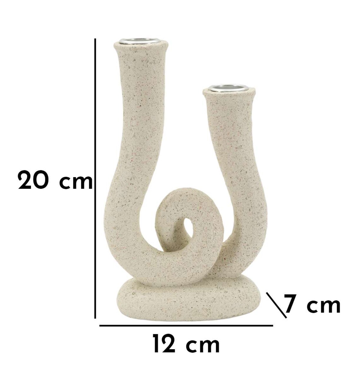 Designul fluid si textura naturala se imbina armonios intr-o piesa decorativa de impact. Ideal pentru interioare minimaliste, zen sau moderne, acest suport adauga echilibru vizual si rafinament prin formele sale organice. Diametru orificiu lumanare: 2.5 cm.