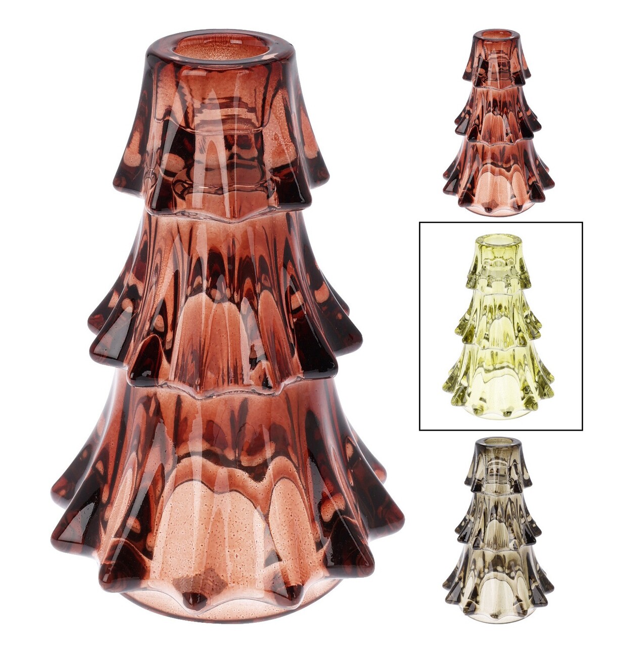 Suport lumanare Xmas Tree v2, Excellent Houseware, 10x14.8 cm, sticla, verde deschis