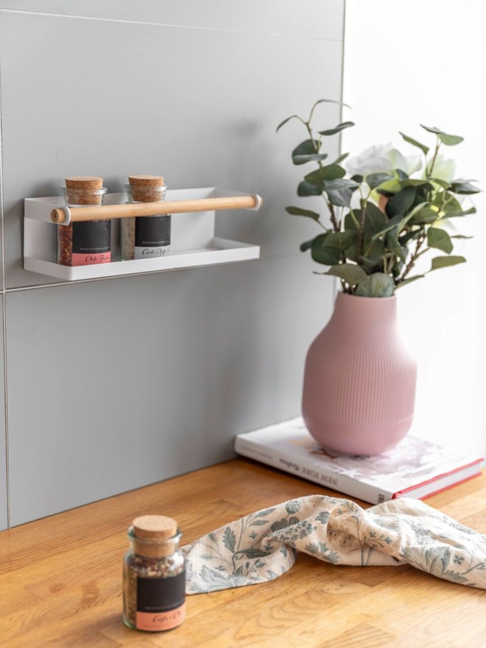 Suport magnetic pentru condimente, Wenko, Magna, 32 x 8 x 8 cm, alb