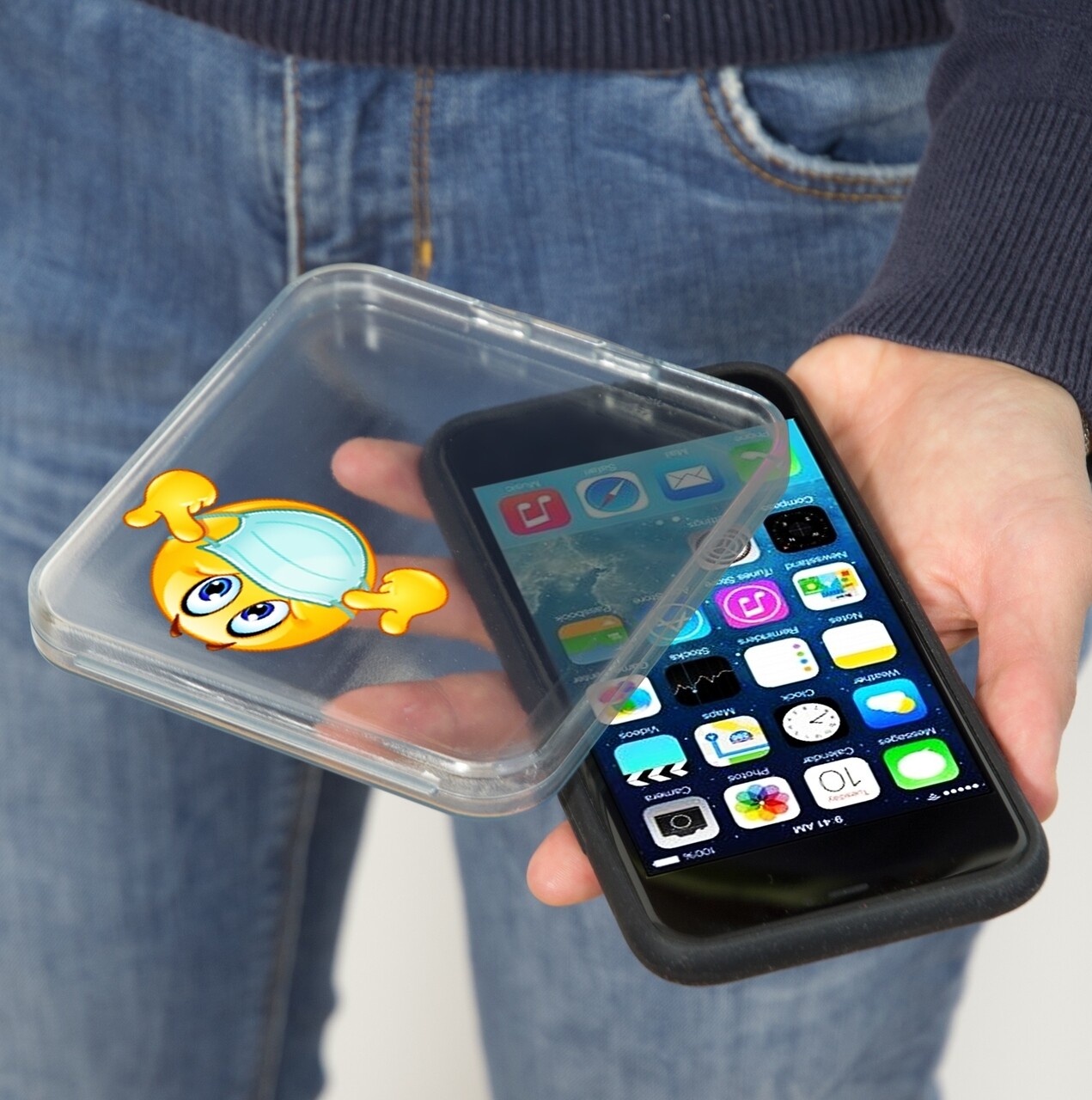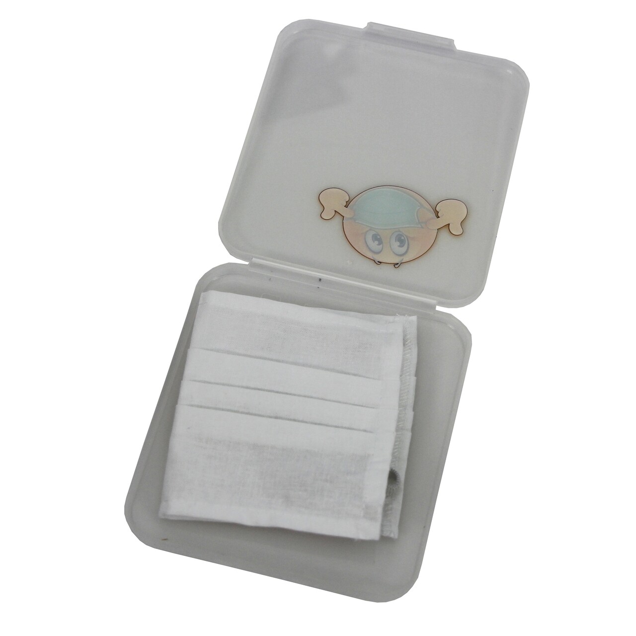 Cutia pentru masca poate fi igienizata cu ajutorul solutiilor antibacteriene sau in cuptorul cu microunde.