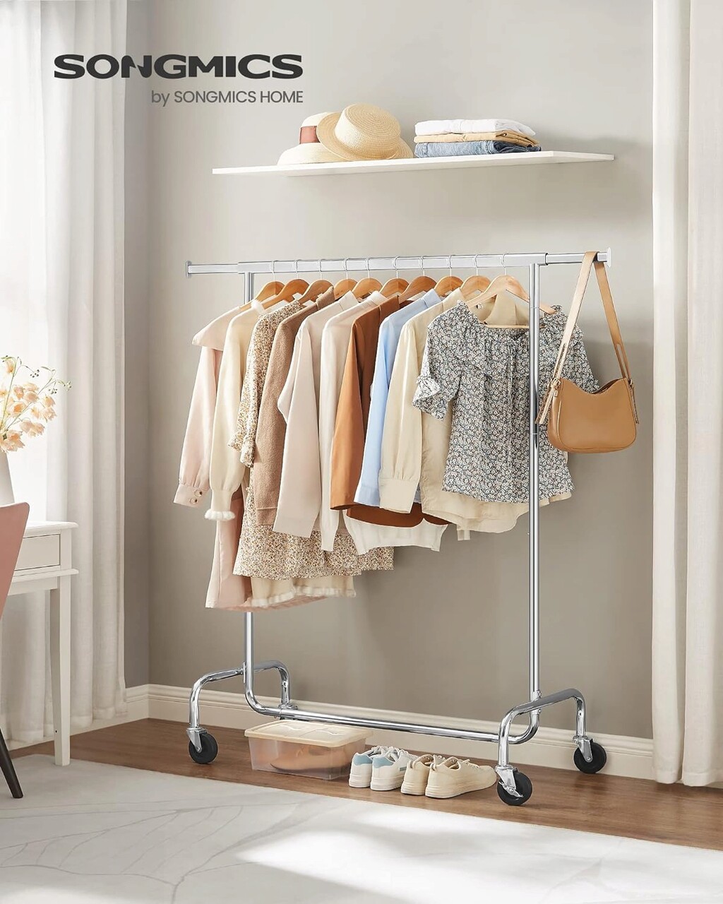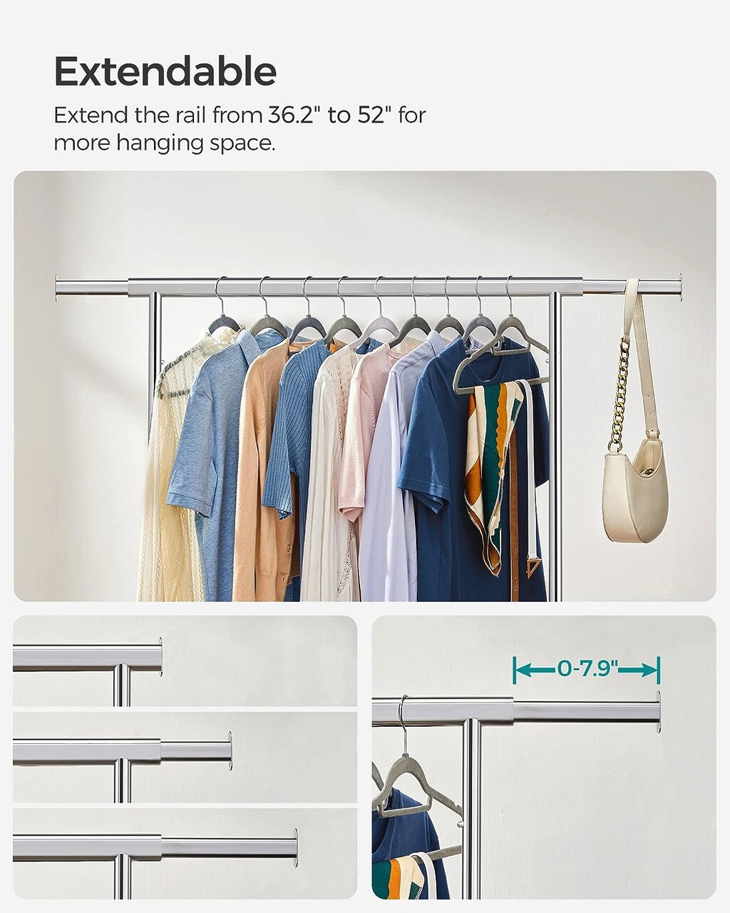 Suport mobil pentru umerase Songmics, 110-150x55x160 cm, max 130 kg, extensibil, metal cromat, argintiu