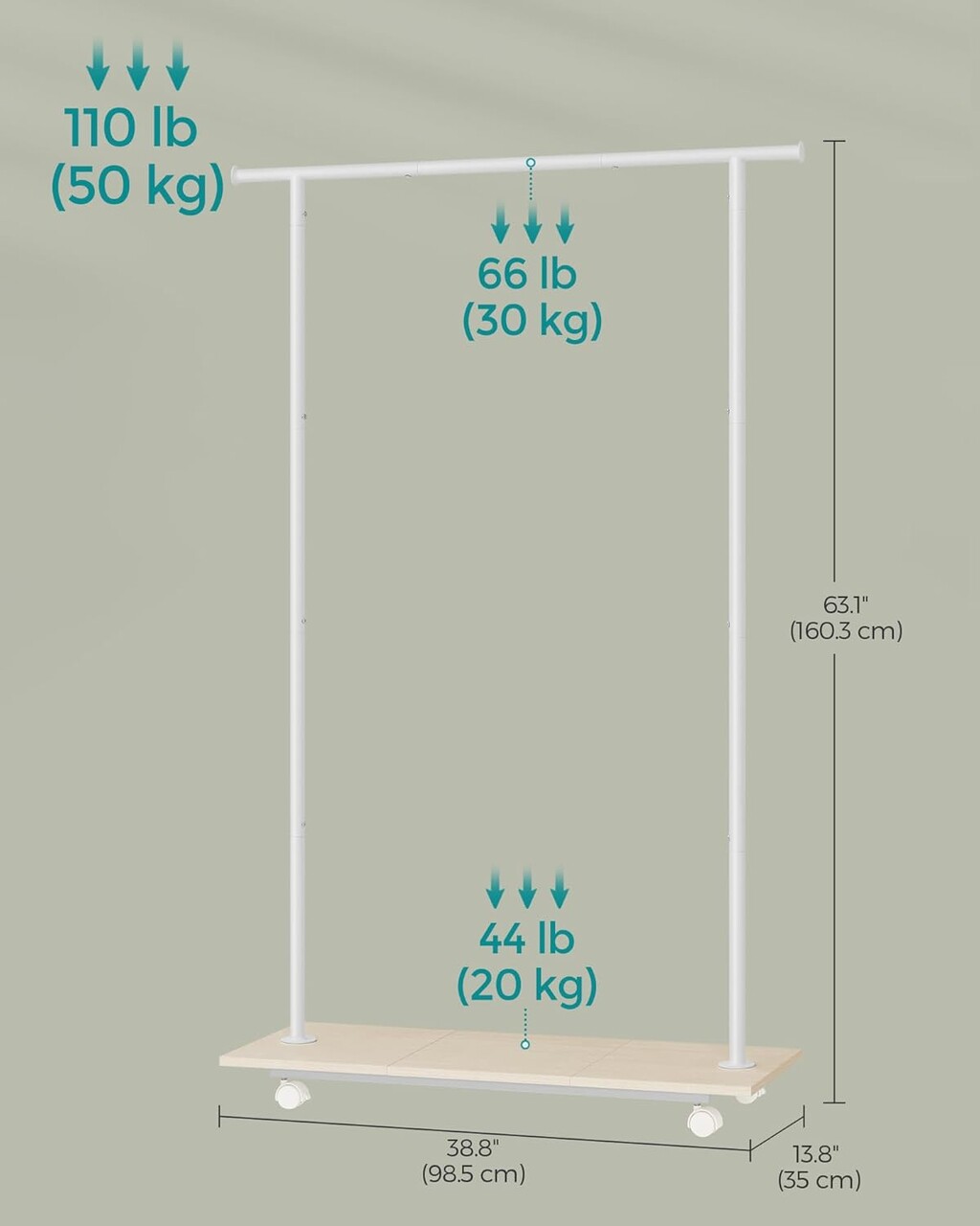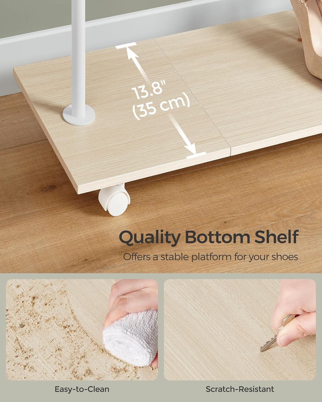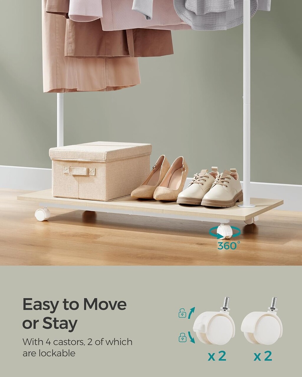 Suport mobil pentru umerase Wide, Songmics, 98.5x35x160.3 cm, max 50 kg, PAL/otel, bej/alb