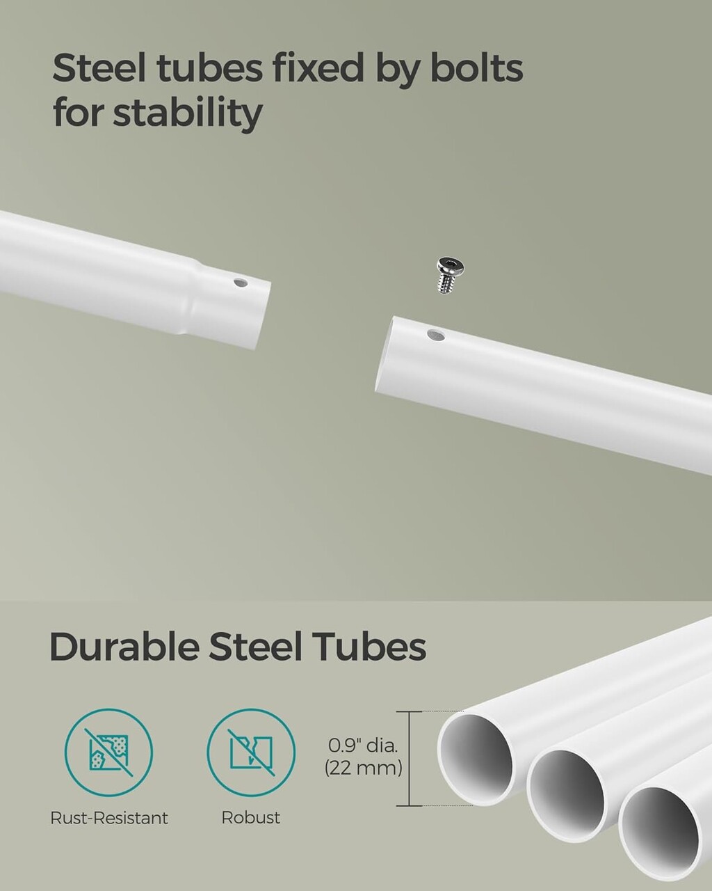 Asamblare usoara Datorita structurii simple, pieselor clar marcate si instructiunilor detaliate, asamblarea acestui suport pentru haine va fi extrem de usoara!