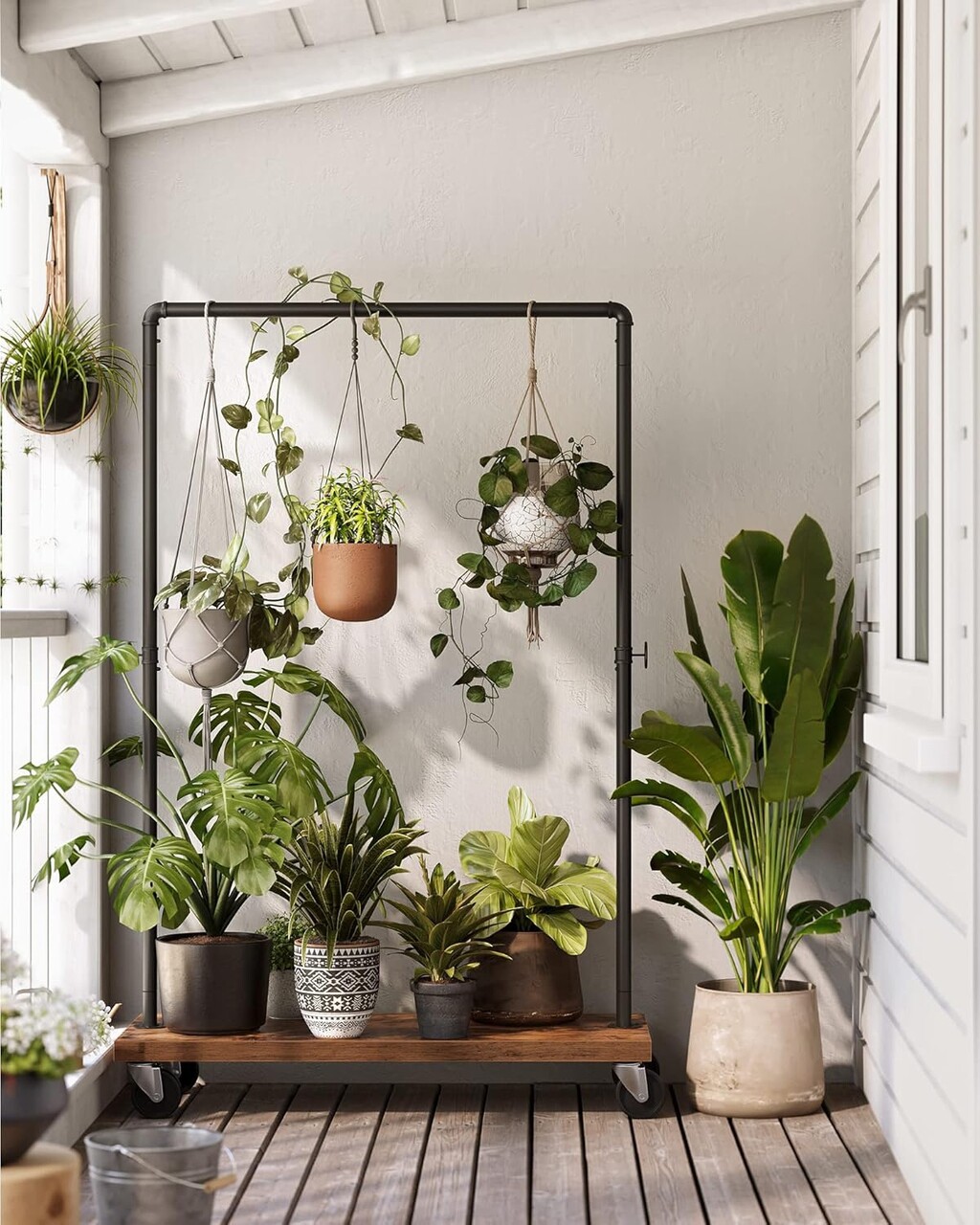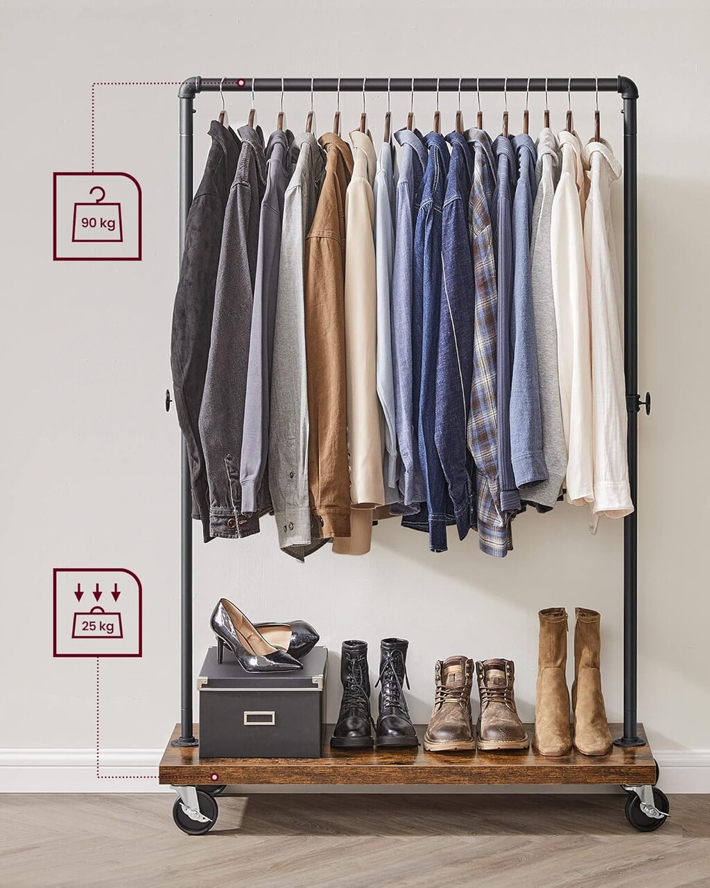 Suport mobil pentru umesare Industrial Pipe, 103.5x40x160 cm, max 115 kg, PAL/otel, maro
