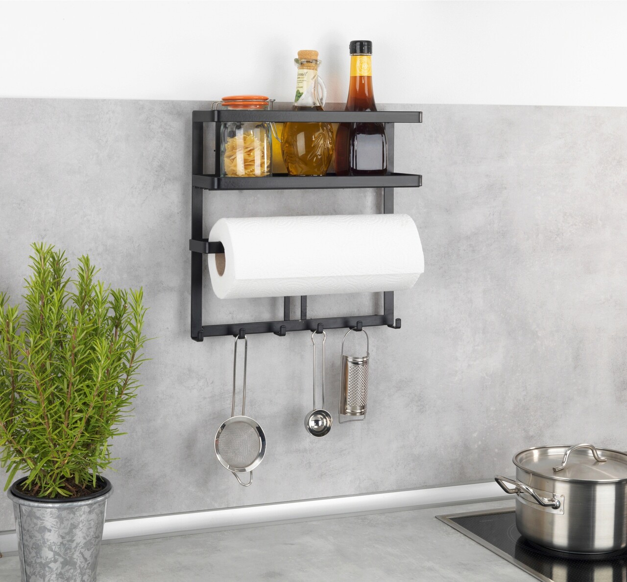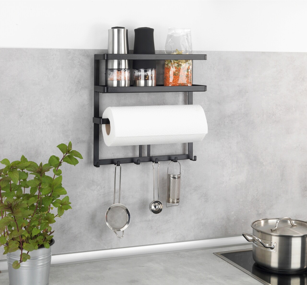 Suport multifunctional pentru bucatarie, Wenko, Gala, 30 x 9 x 33 cm, metal, negru