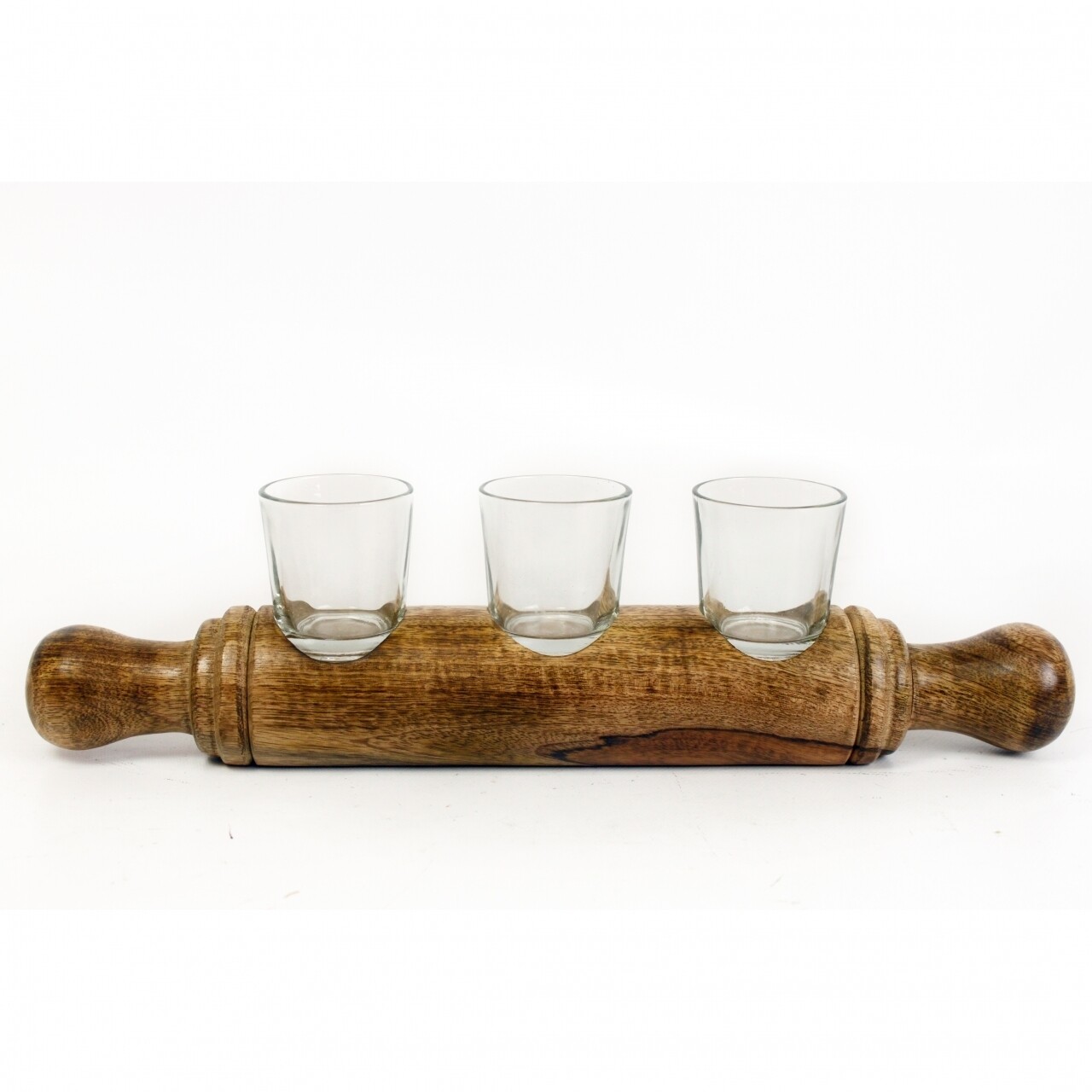 Suport pentru 3 lumanari, Tea Light, Bedora, 39x6 cm, lemn/sticla, natur