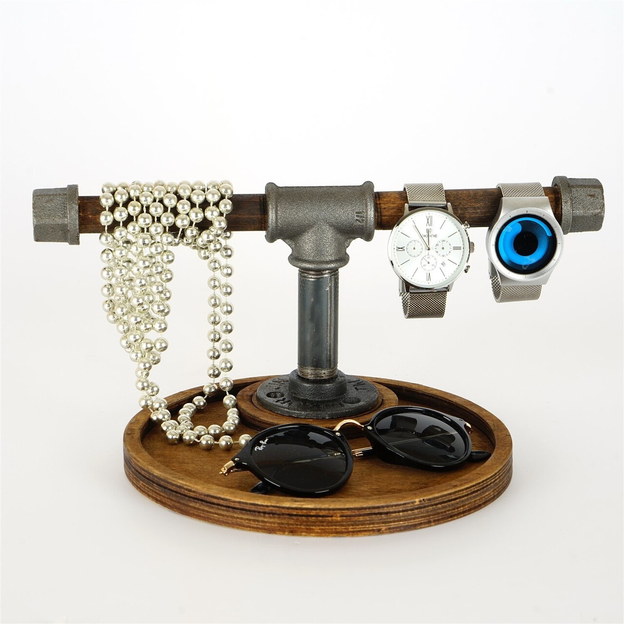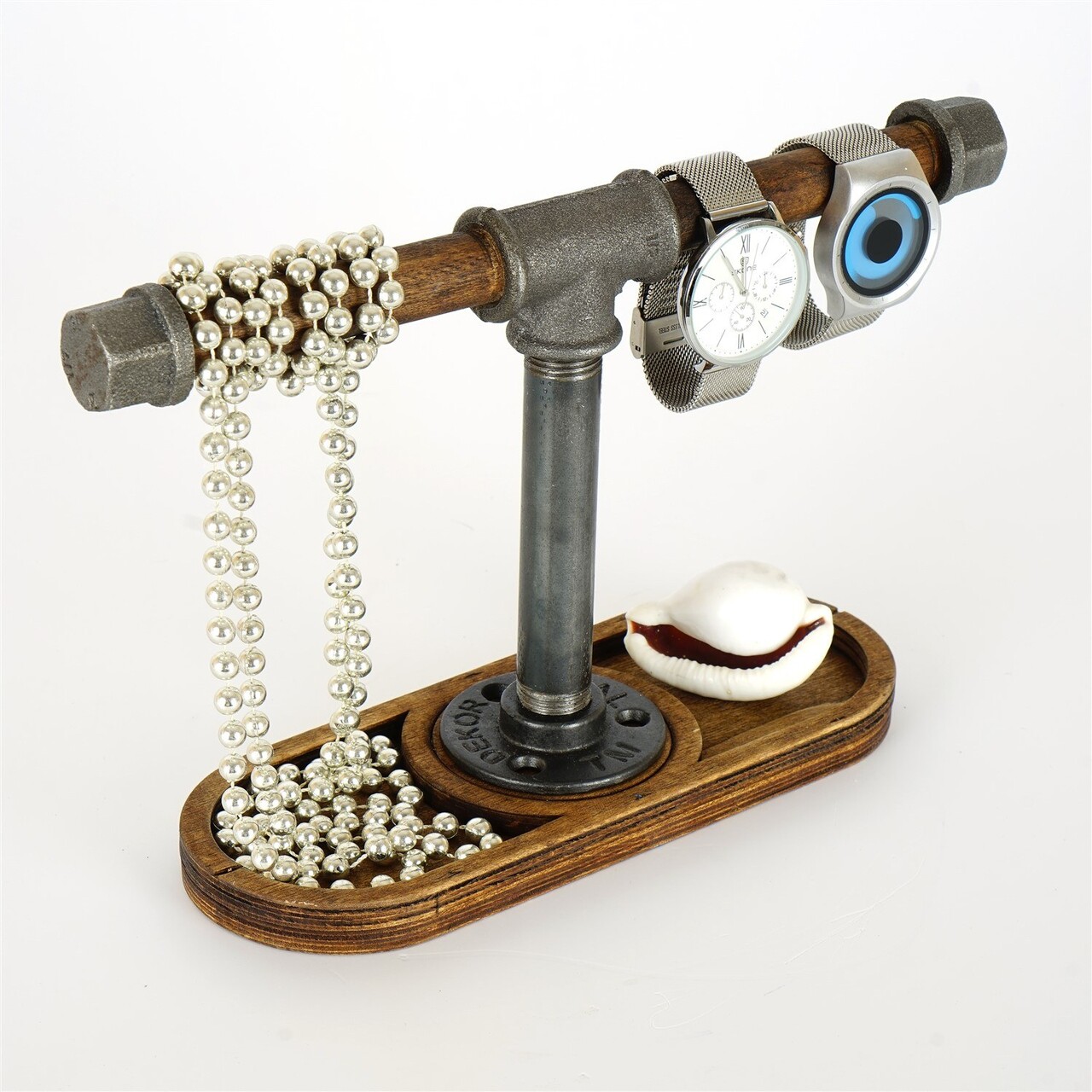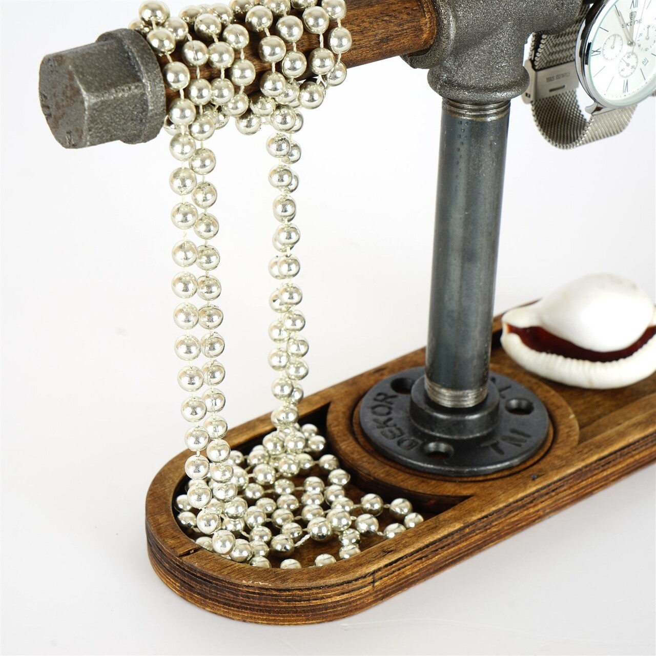 Suport pentru bijuterii, BORURAF268, 30x20x9 cm, Nuc / Argint
