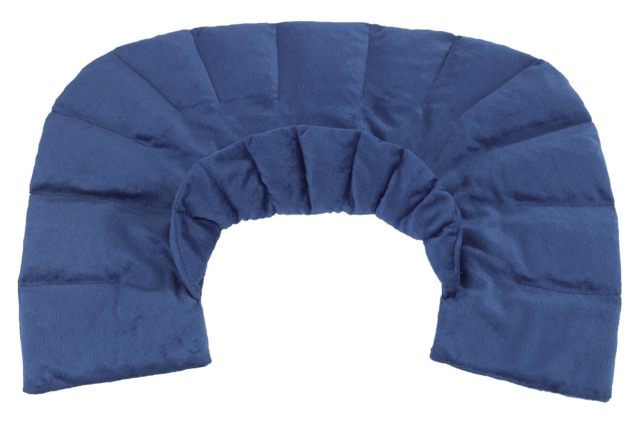 Datorita taieturii speciale si umpluturii cu margele de lut si flori de lavanda, se aseaza perfect in jurul gatului si umerilor si se poate folosi in timpul treburilor casnice sau la birou.