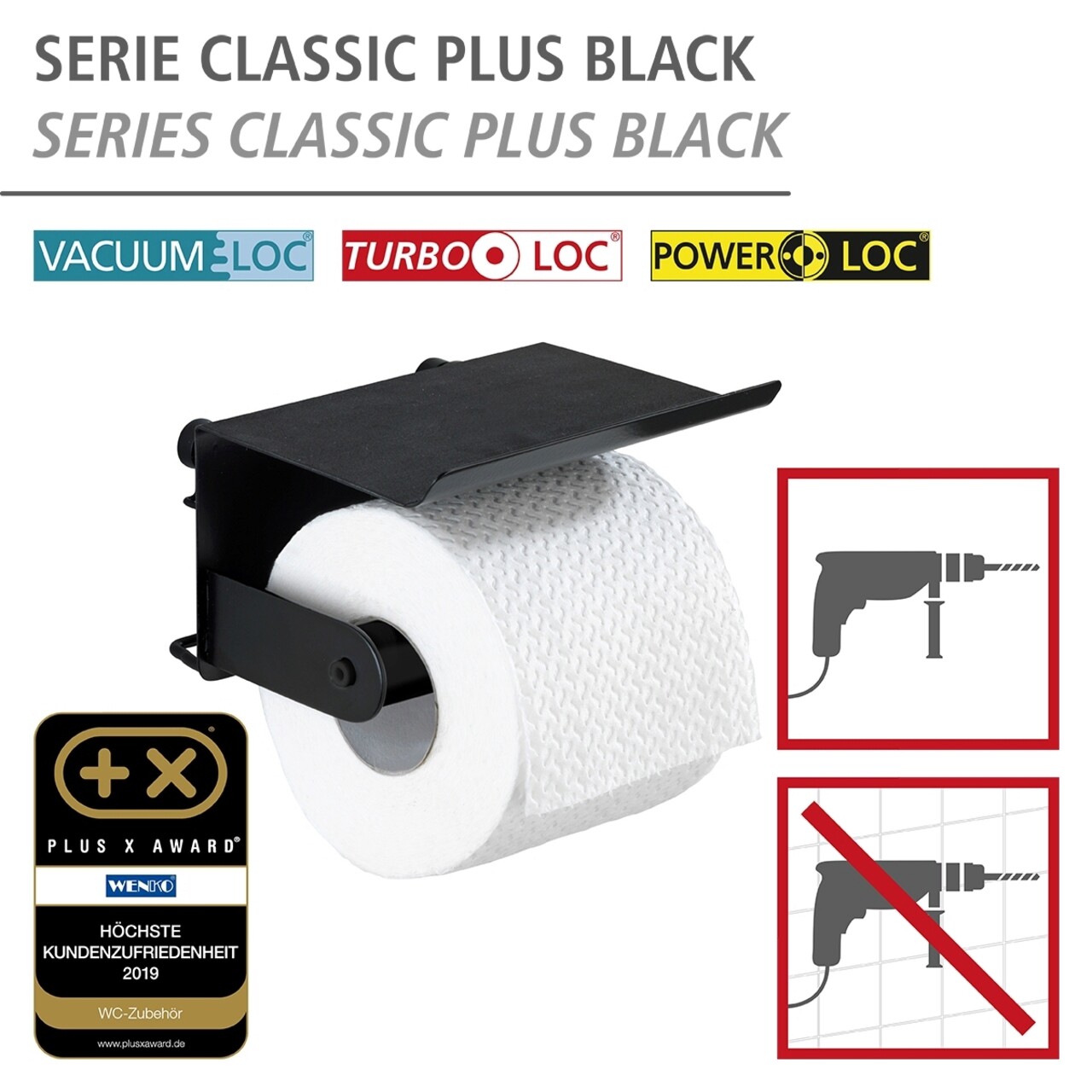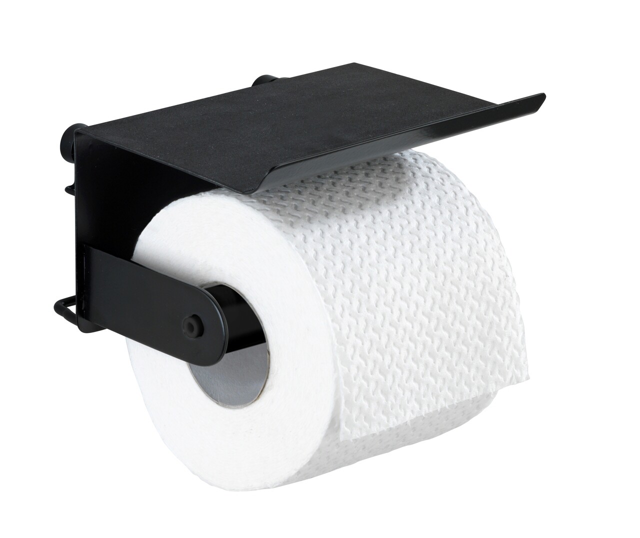 Suport pentru hartie igienica Classic Plus, Wenko, 14x14x10 cm, metal/otel, negru