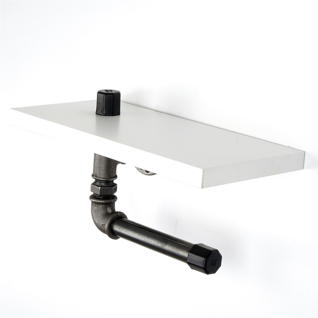 Suport pentru hartie igienica cu raft, Evila Originals, 30x23x12 cm, MDF, alb