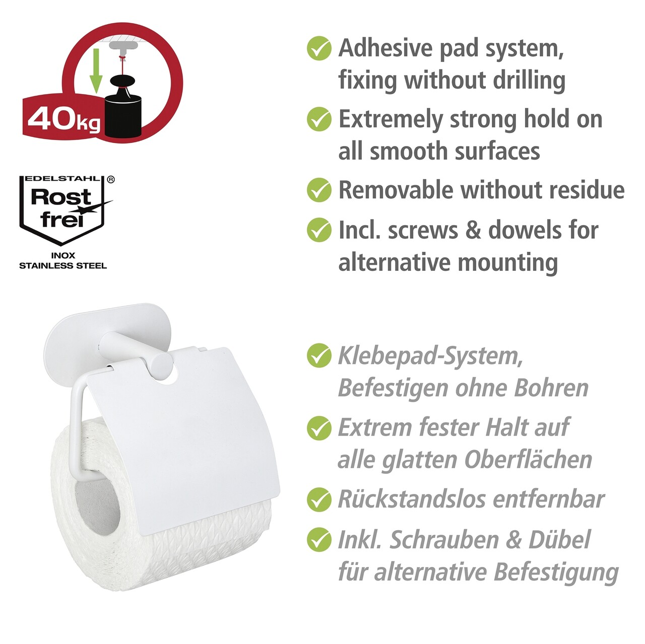 Suport pentru hartie igienica Orea, Wenko, 14x7x12.5 cm, inox, alb