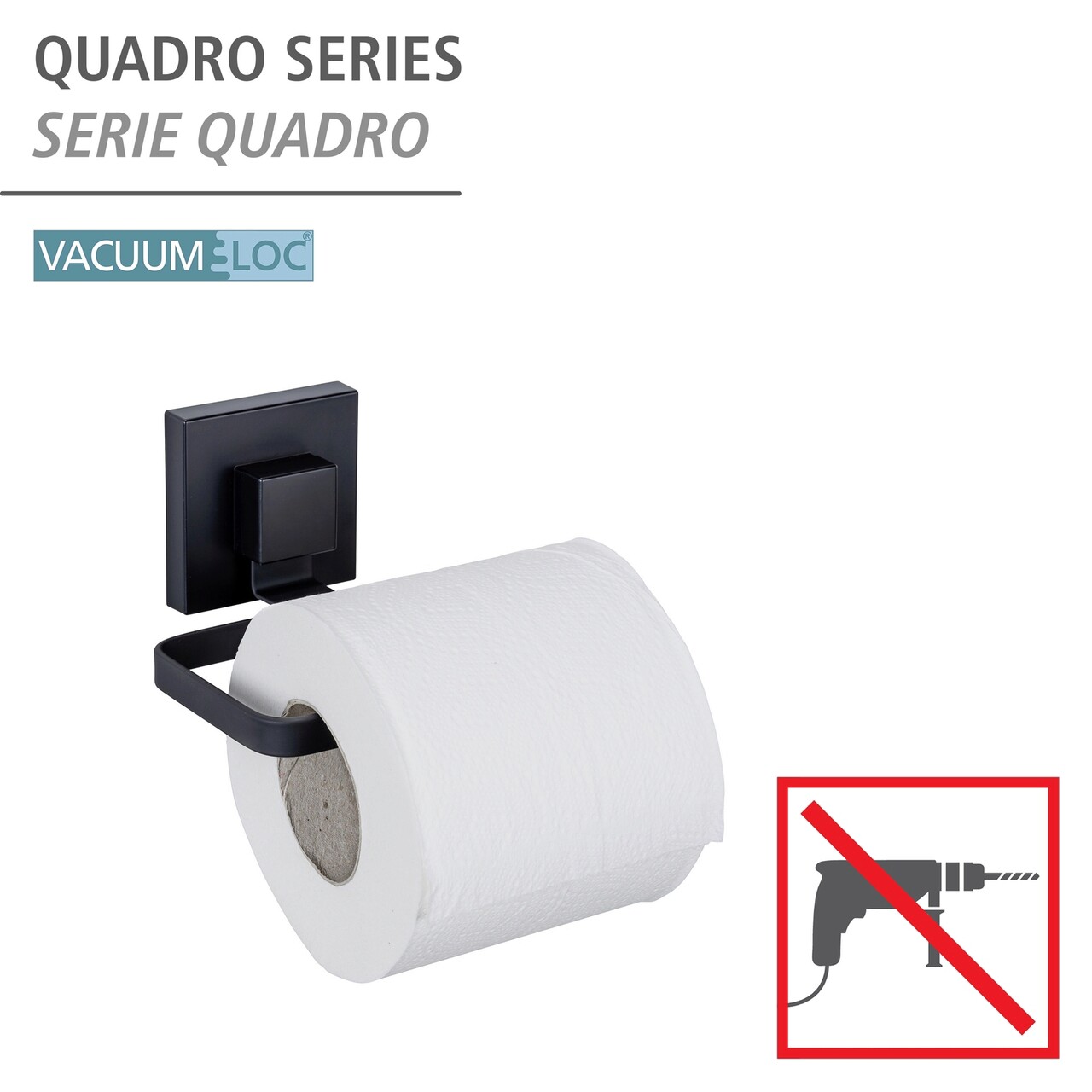 Suport pentru hartie igienica Quadro Black, Wenko, 14x11x6 cm, inox/ABS, negru