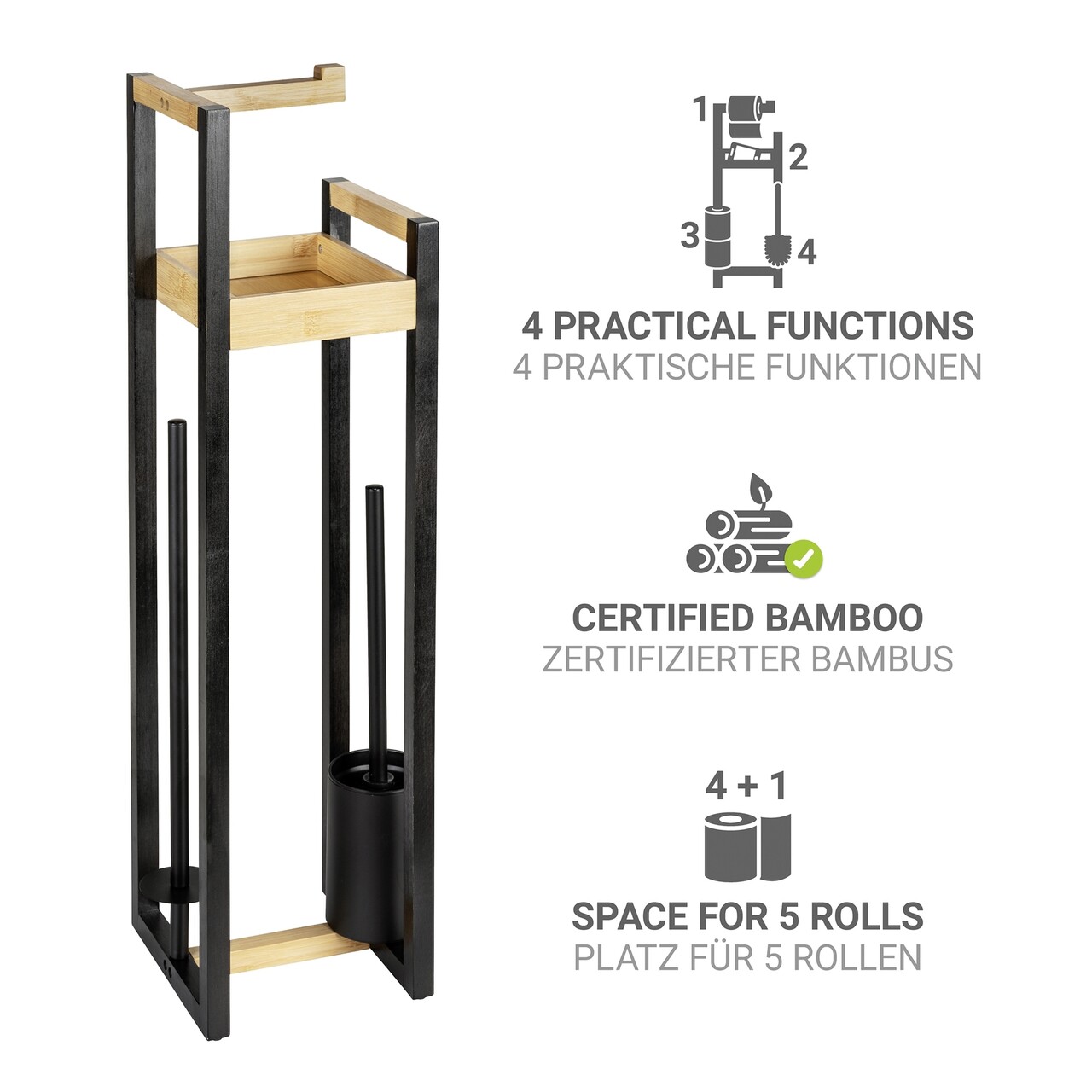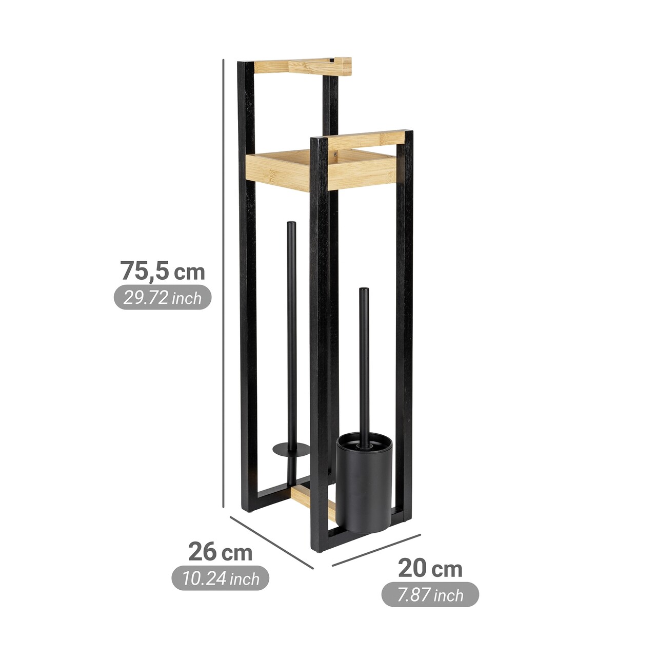 Suport pentru hartie igienica si perie toaleta Braidi, Wenko, 26x20x75.5 cm, bambus, natur/negru