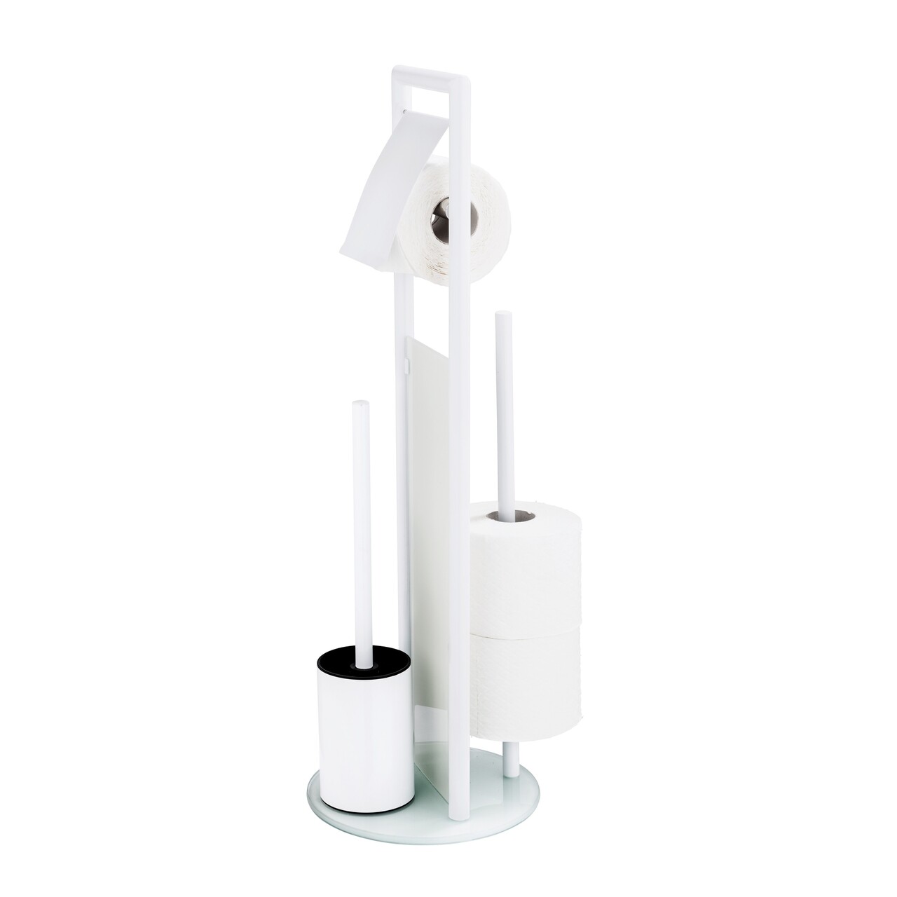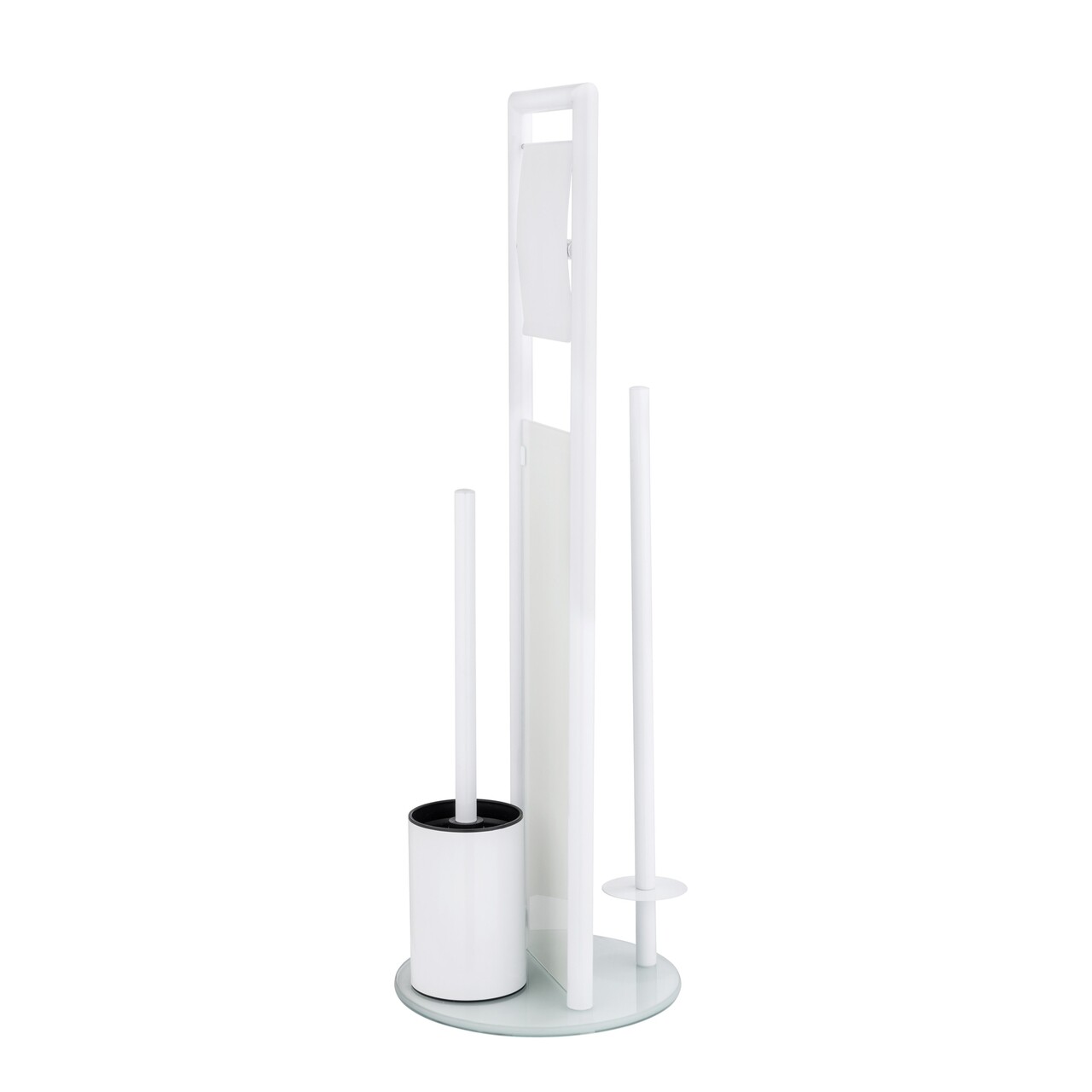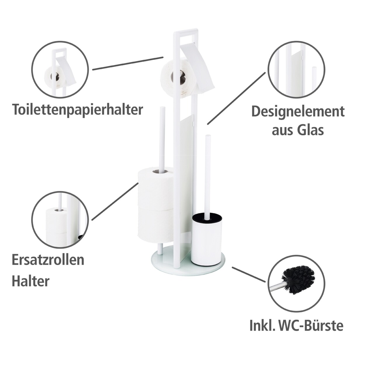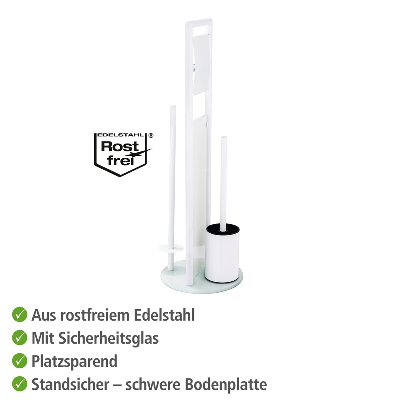 Suport pentru hartie igienica si perie toaleta Ravina, Wenko, 20x70 cm, inox/sticla temperata, alb