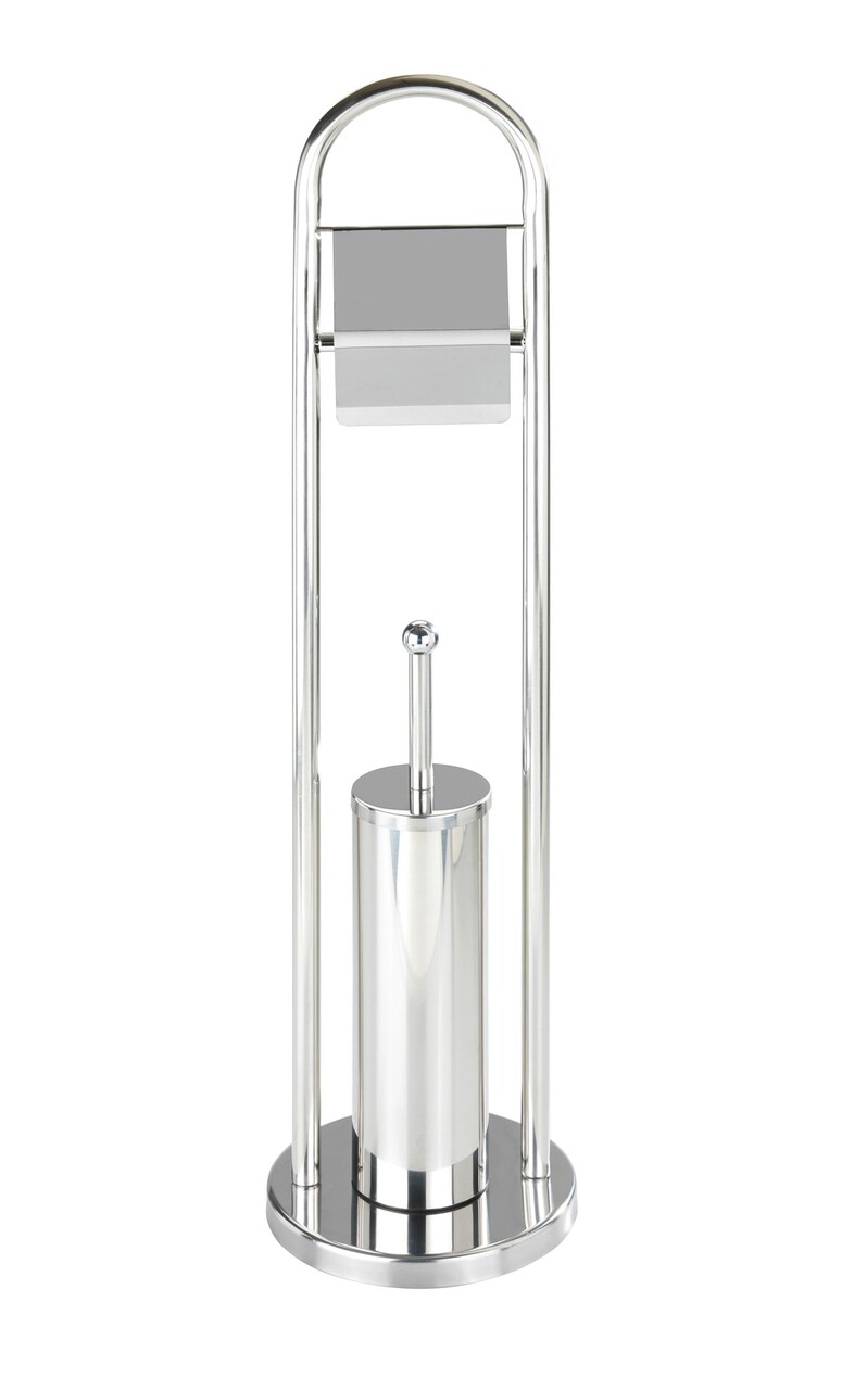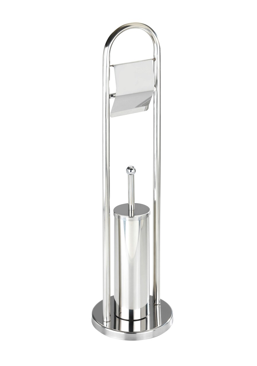 Suport pentru hartie igienica si perie toaleta, Wenko, Exclusive Vastor, 22 x 22 x 81 cm, inox, gri