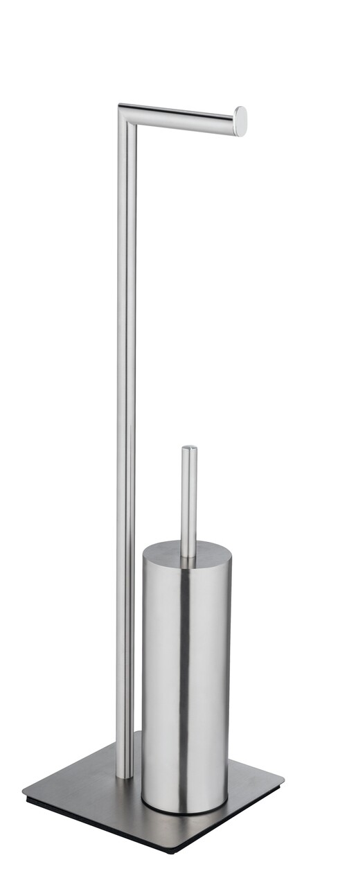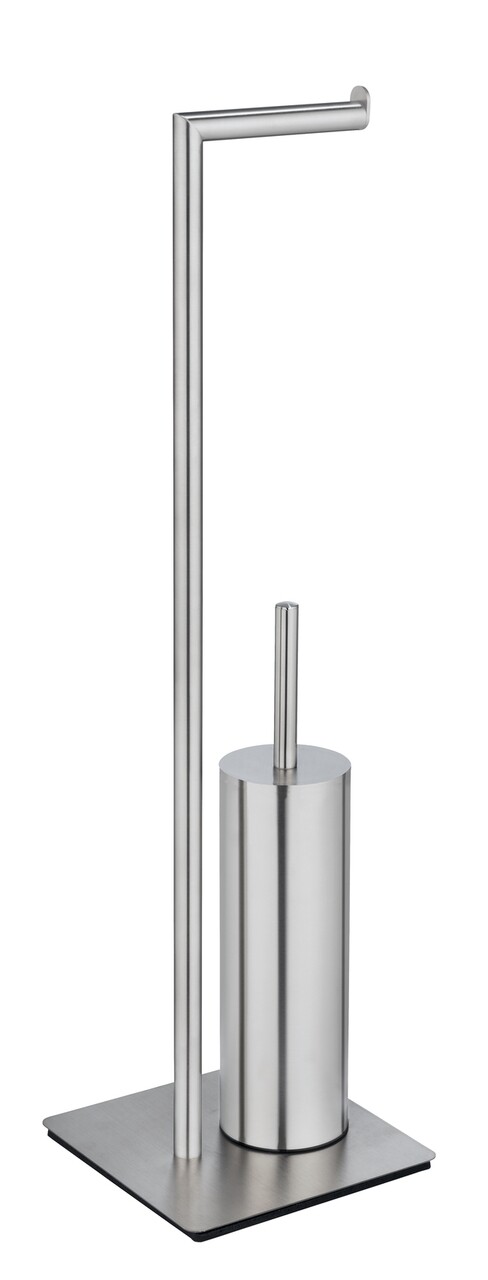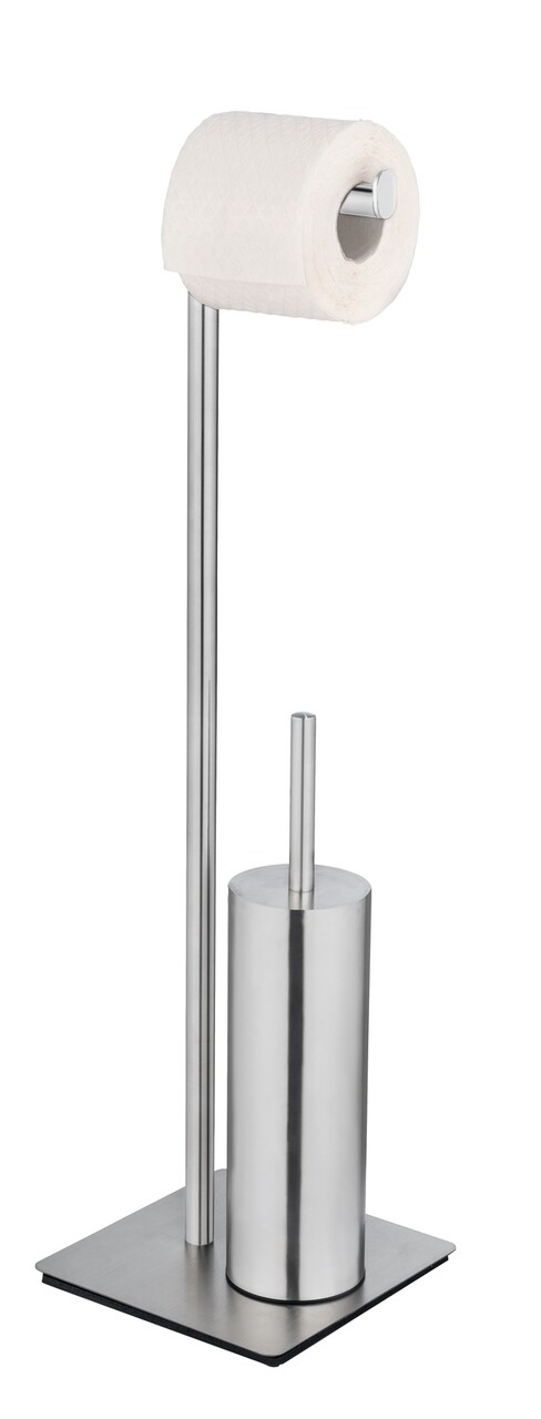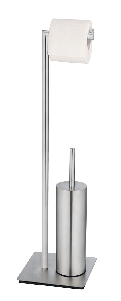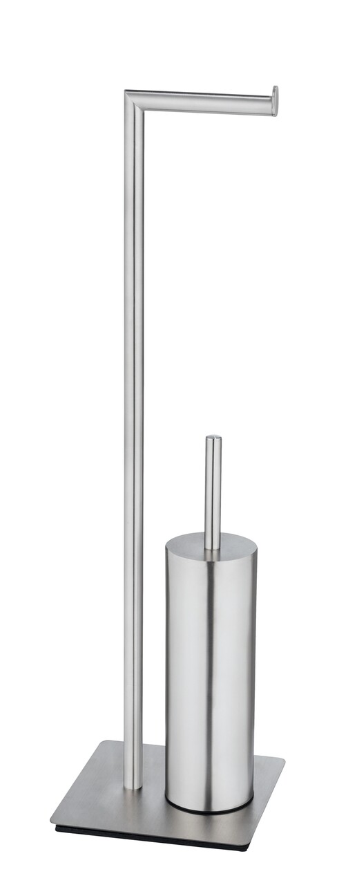 Suport pentru hartie igienica si perie toaleta, Wenko, Recco, 20 x 71.5 x 20 cm, inox, gri