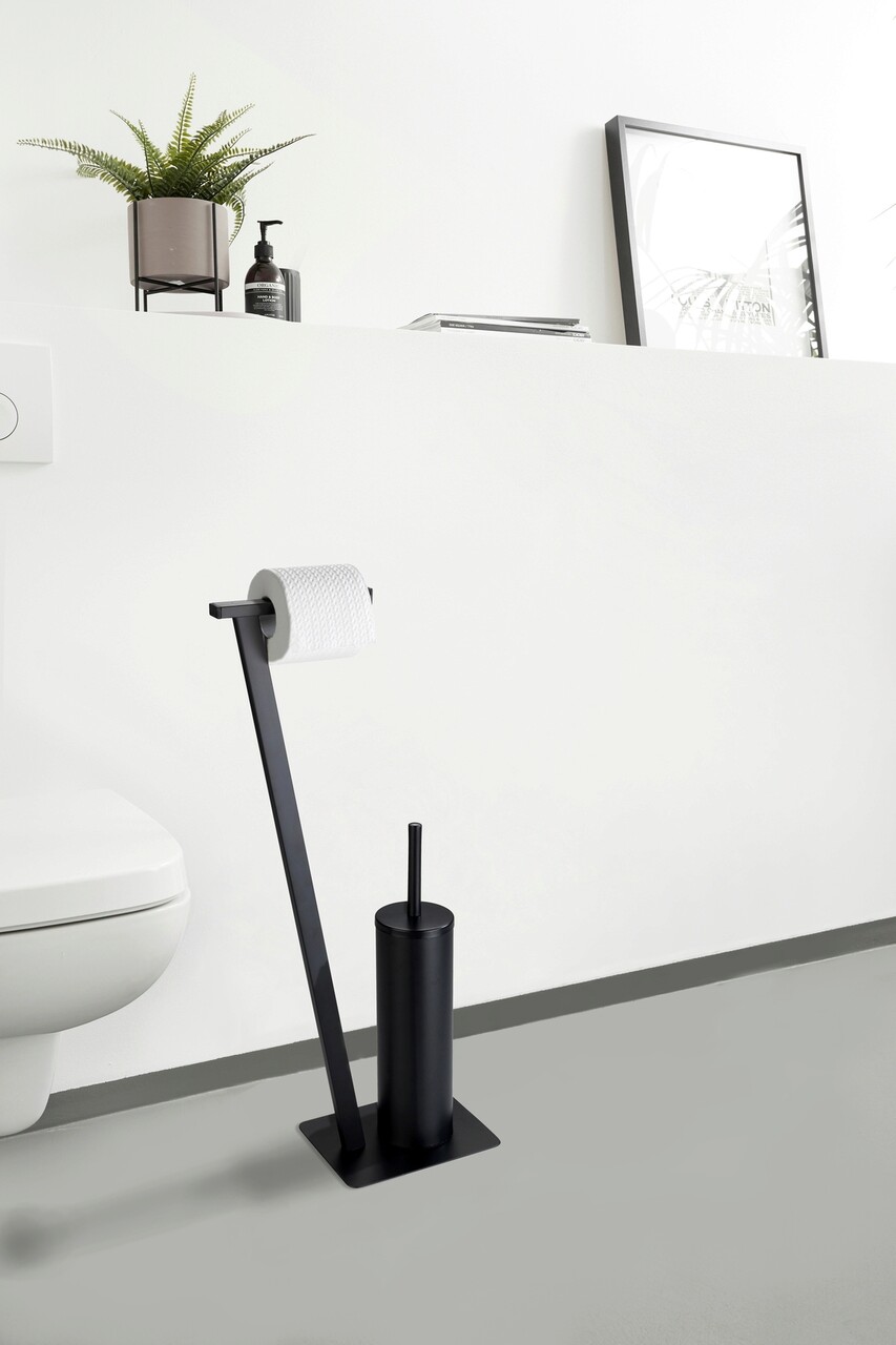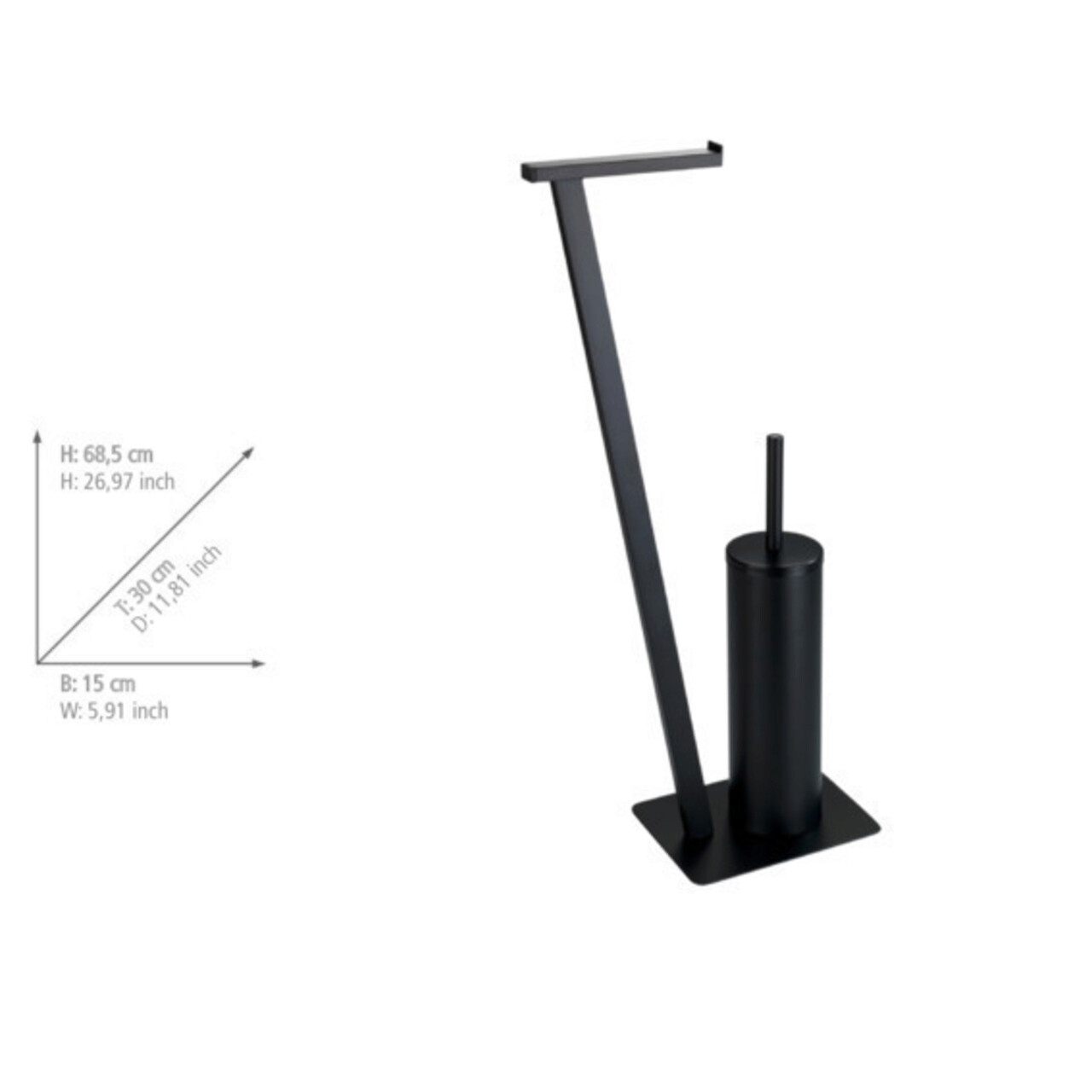 Suport pentru hartie igienica si perie toaleta, Wenko, Rivazza, 15 x 30 x 68.5 cm, metal, negru