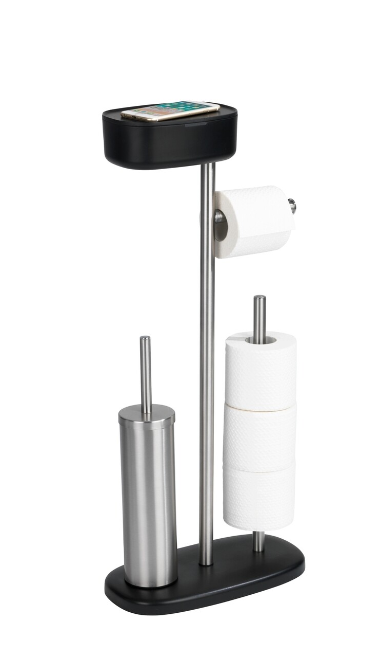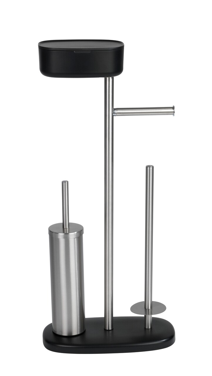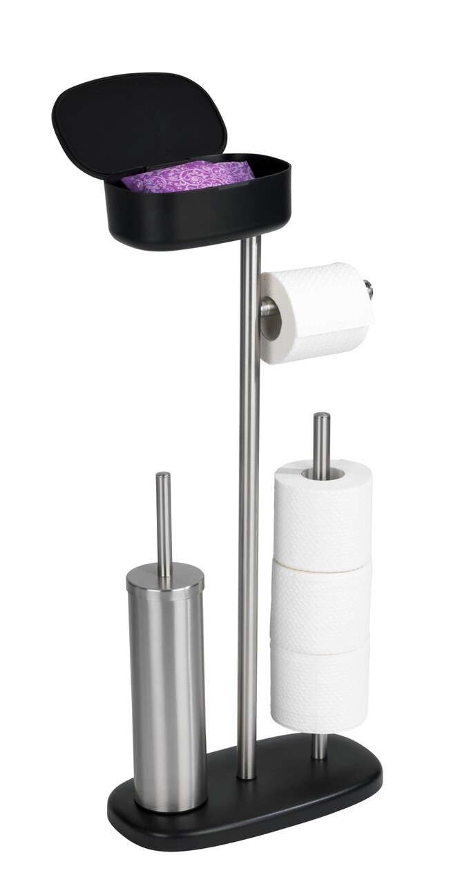 Suportul ofera cinci functii si, prin urmare, este ideal pentru baile mici. Pe langa suportul pentru peria de toaleta, suportul pentru rola de hartie igienica pentru disponibilitate imediata si suportul de rezerva pentru pana la trei role de hartie, acesta este prevazut cu un mic spatiu de depozitare pentru hartia igienica umeda, produsele de igiena pentru femei sau alte accesorii.