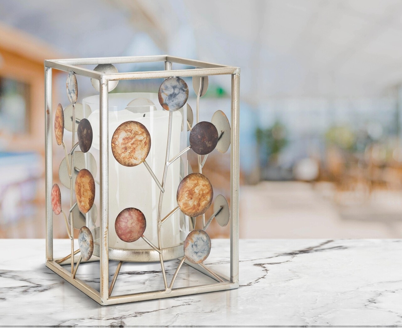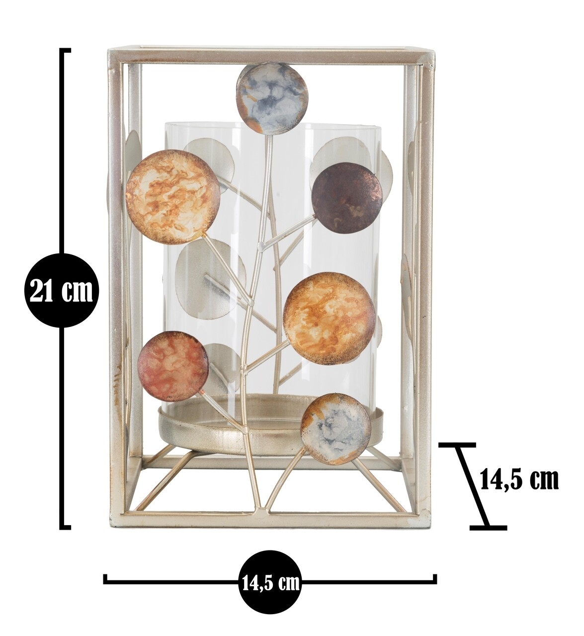 Suport pentru lumanare Bixy, Mauro Ferretti, 14.5x14.5x21 cm, fier/sticla, multicolor