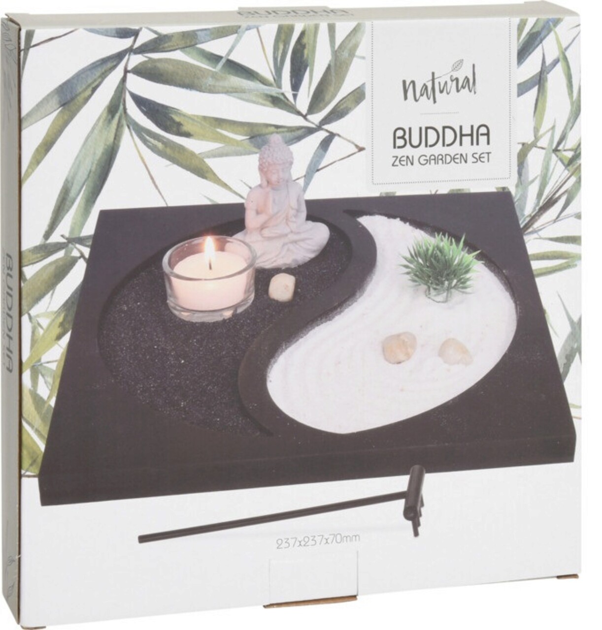 Suport pentru lumanare Buddha yin yang, 23.7x23.7x7 cm, MDF, negru/alb
